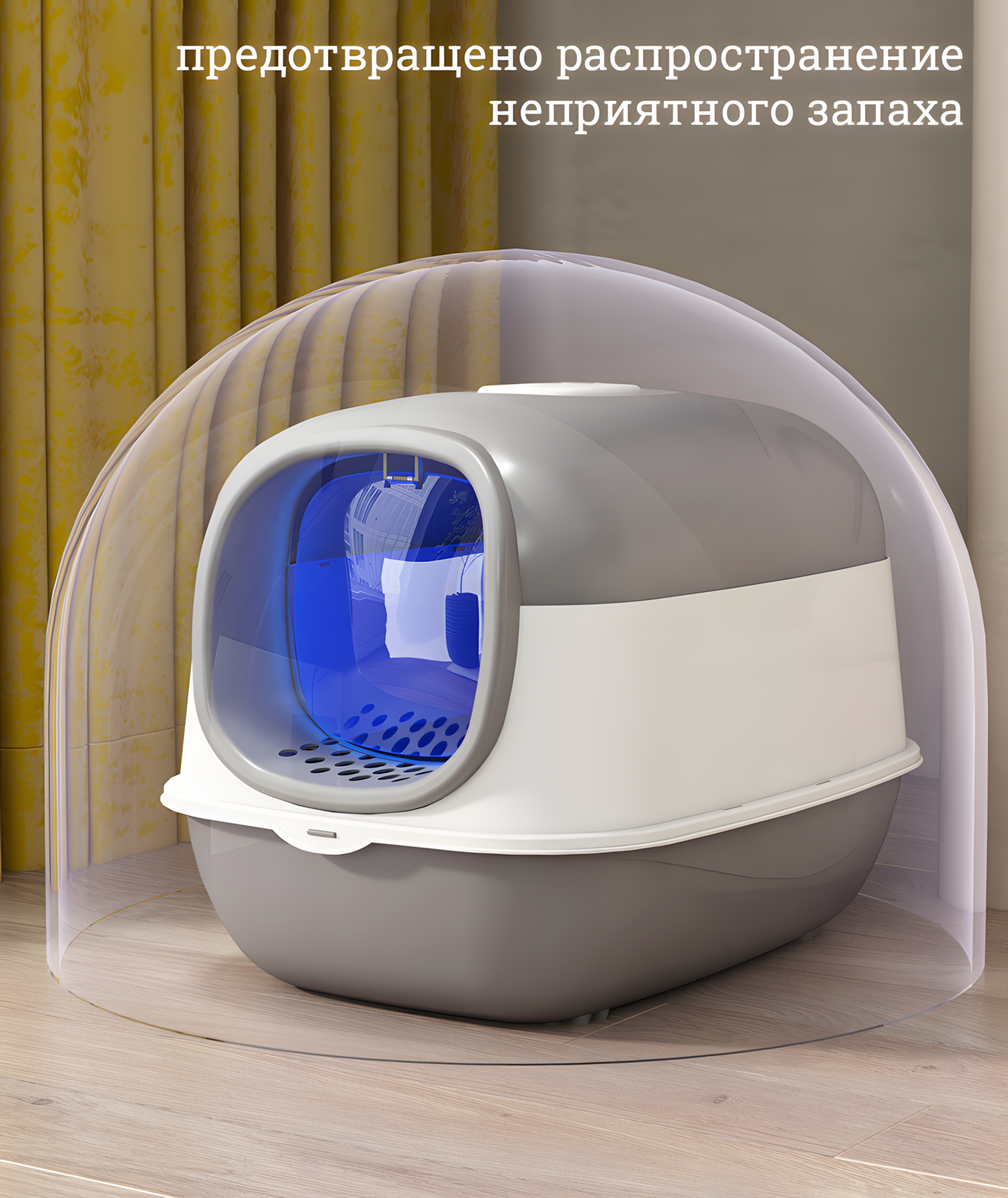 Туалет для кошек Nanbo Wang, закрытый, с УФ-лампой и угольным фильтром, серый