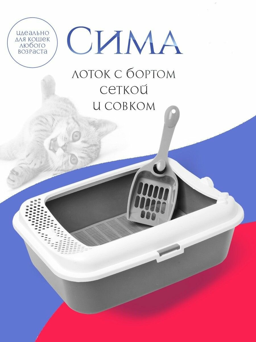 Лоток для кошек Джи Пи Ай Сима с сеткой, бортом и совком интересное: