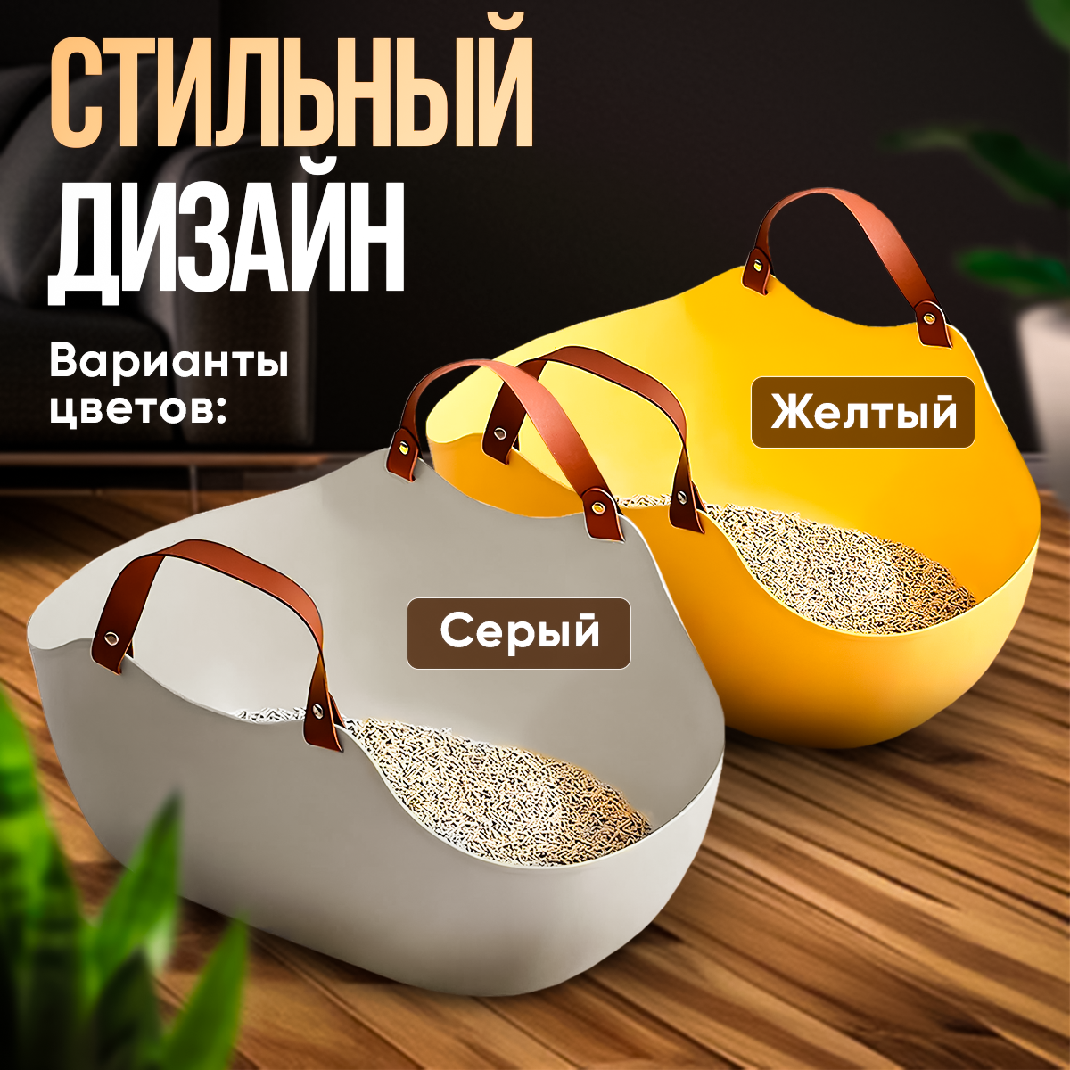 Лоток для кошек с высокими бортиками солнечно-жёлтый с лопаткой в комплекте. Лоток для животных дизайнерский жёлтый интересное: