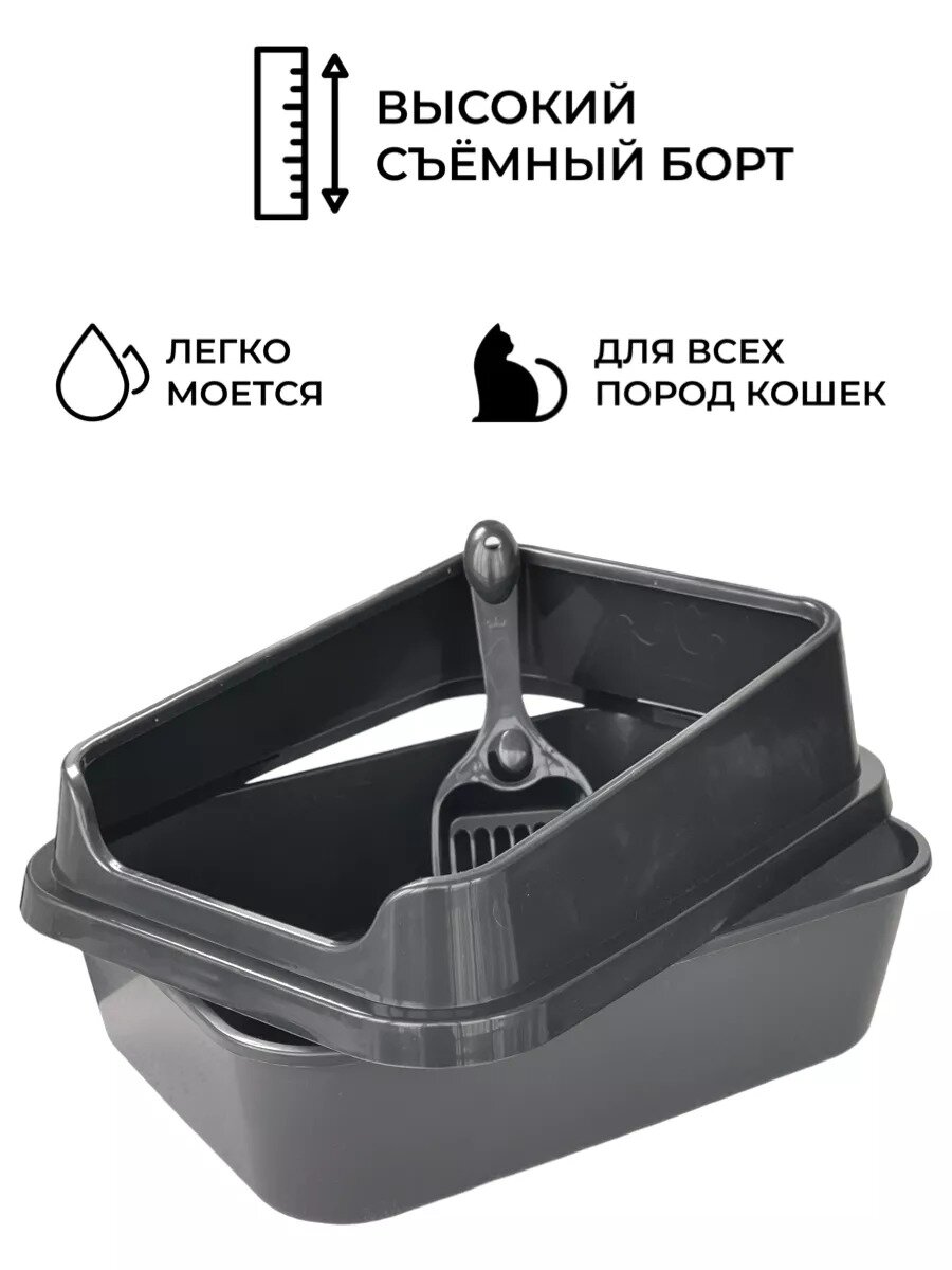 Туалет для кошек, лоток с совком, серый с серым бортом, 39х30х19,5 см интересное: