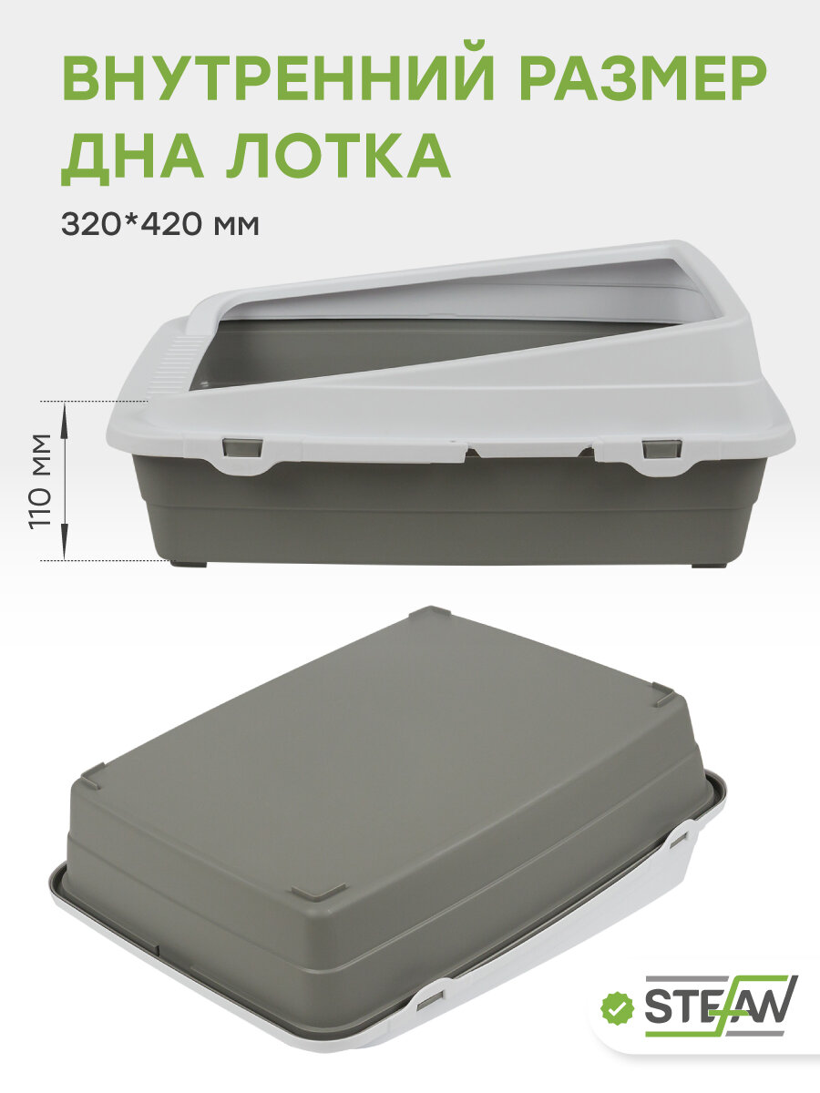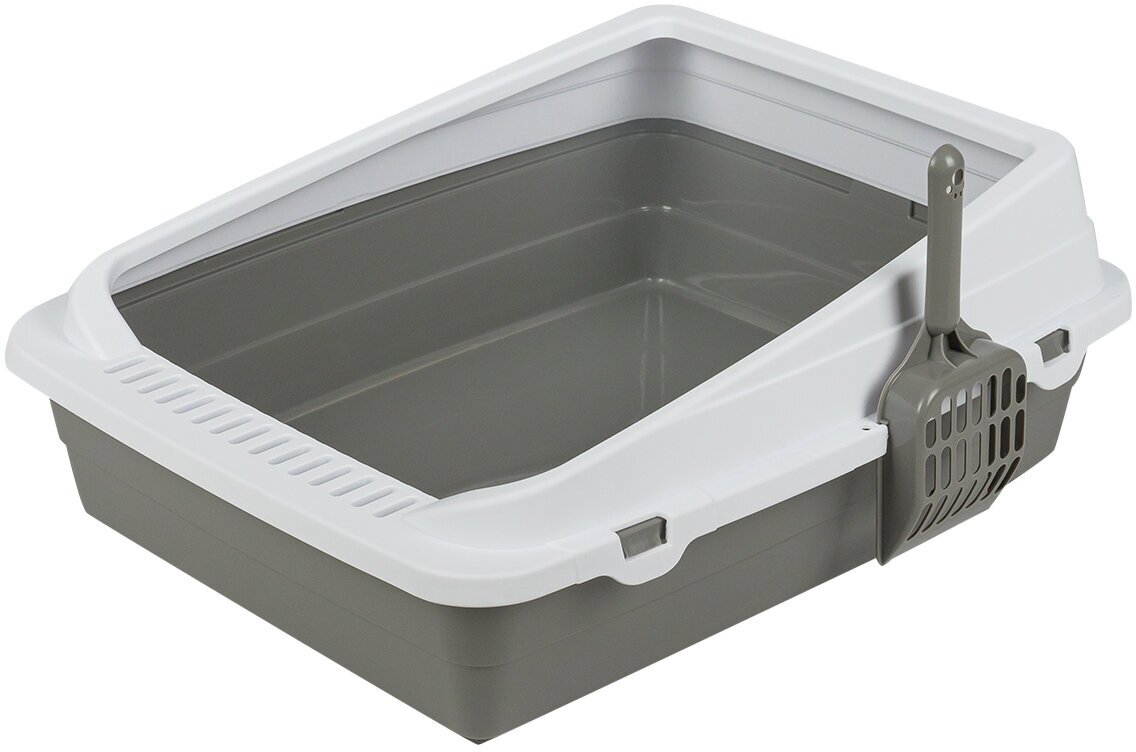 Купить Туалет-лоток STEFAN (Штефан) для котов и кошек с высокими бортами и совком, под наполнитель, средний (M) размер 48х39х18см, серый, BP2511