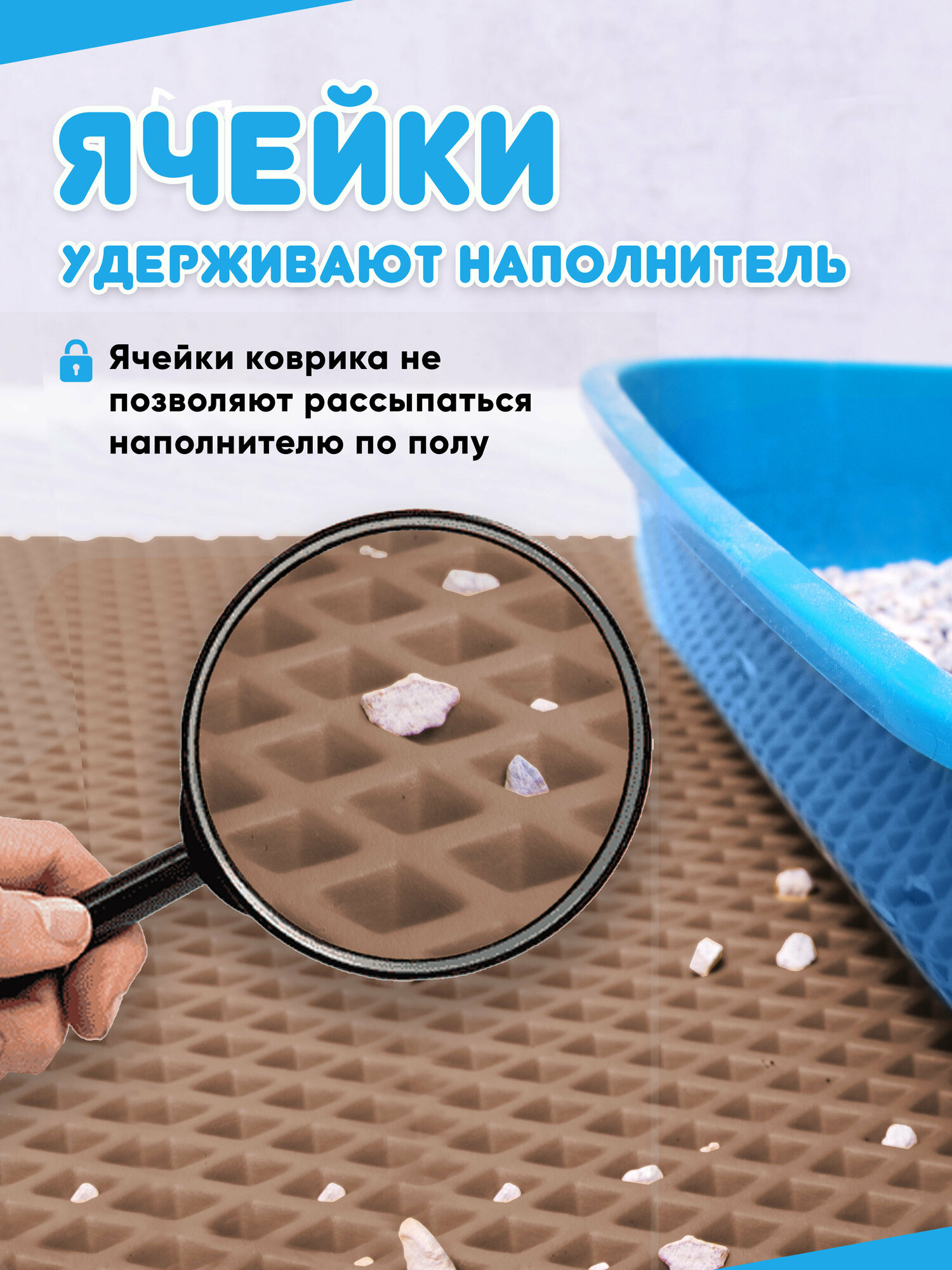 Коврик под лоток для кошек/коврик под лоток для собак / коврик под лоток / коврик для туалета (синий) 60*44см