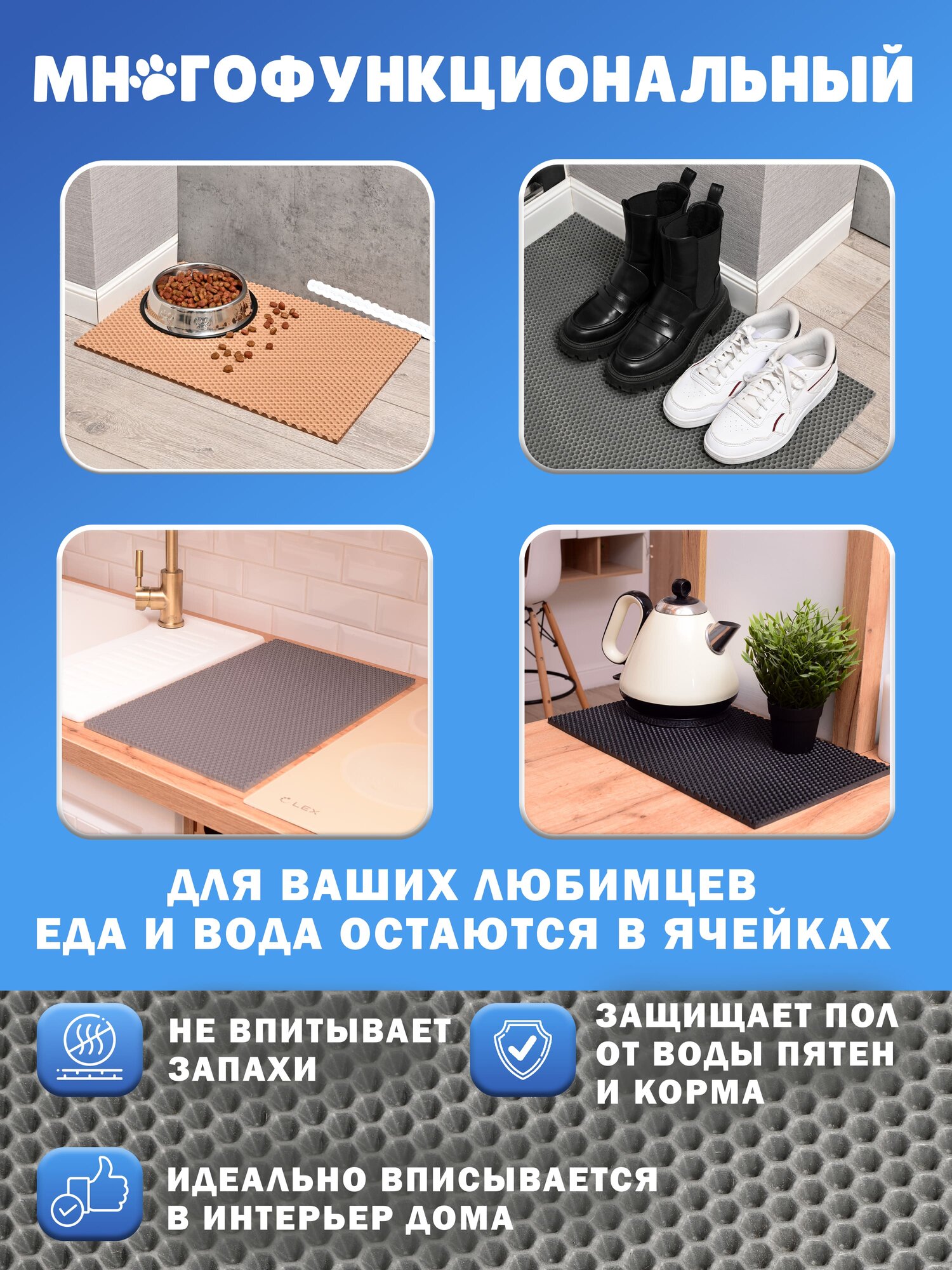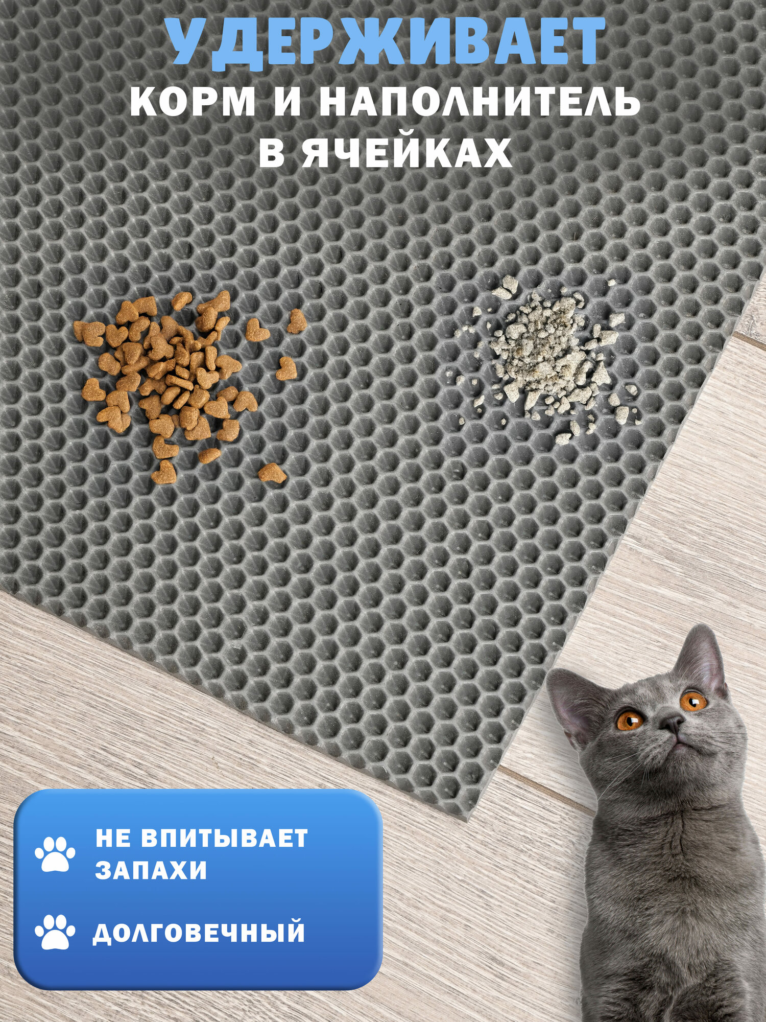 Коврик под лоток "Серая сота", ЭВА, 60x40 см, влагостойкий, для кошек интересное: