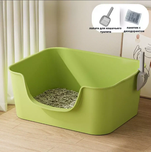 Большой лоток для кошек, с высокими бортиками, зеленый, 48х32х20 см интересное: