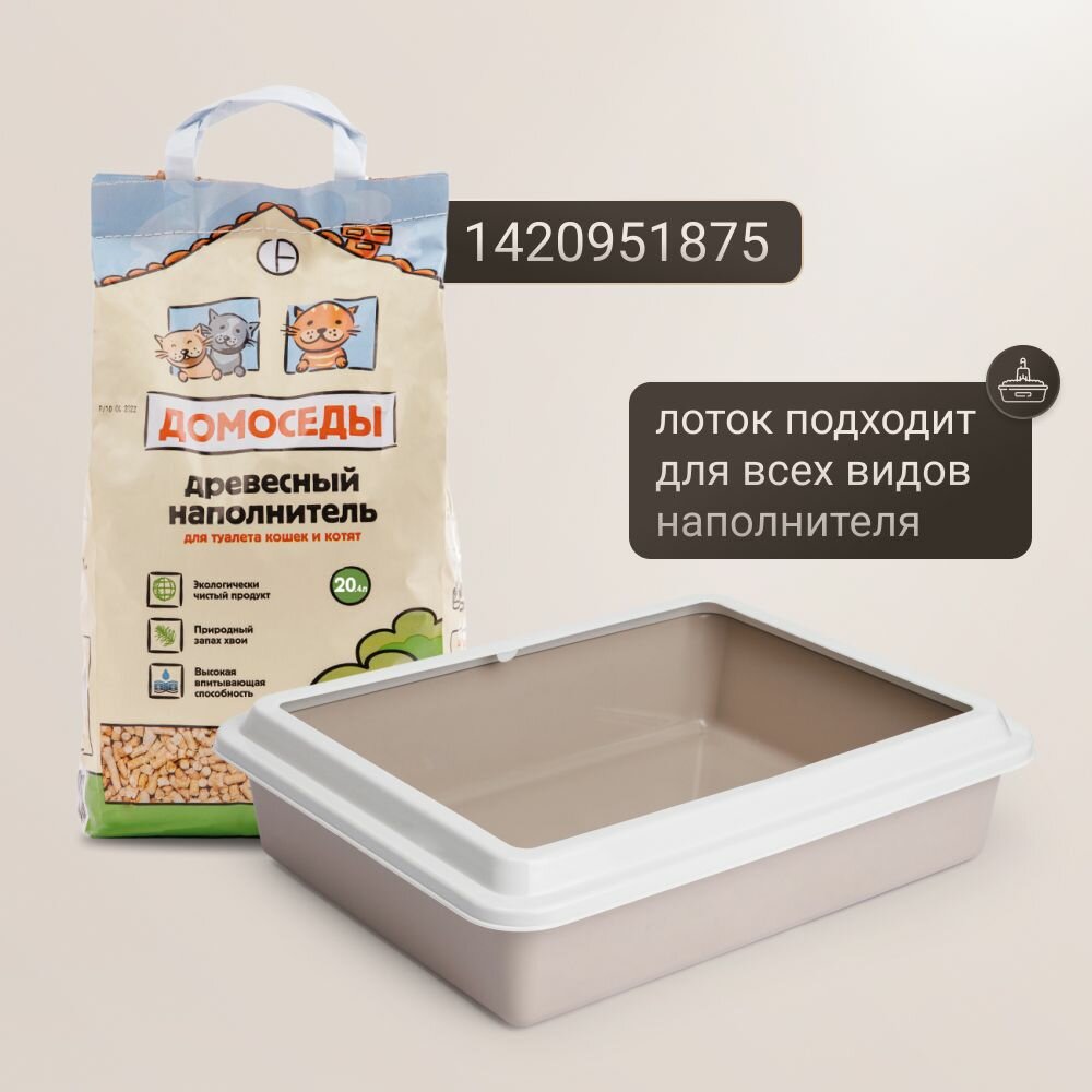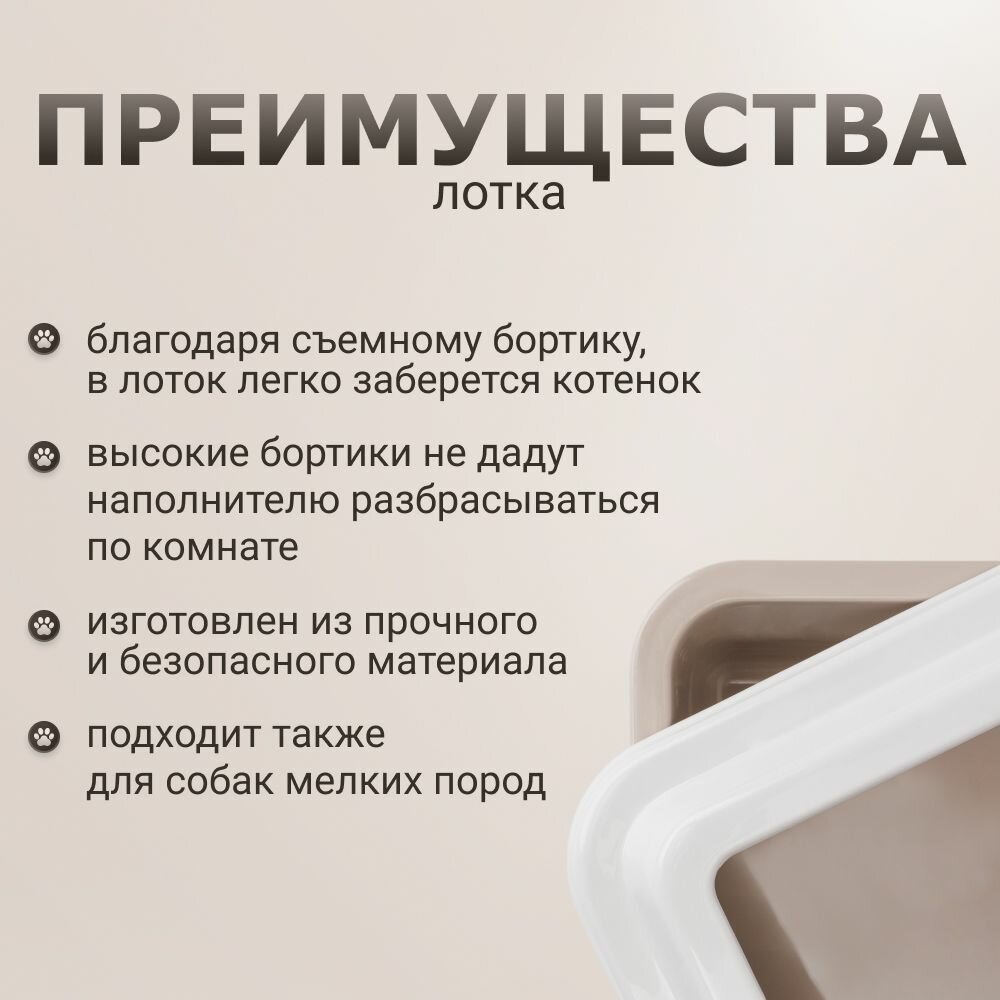 Лоток для кошек и собак мелких пород с высокими бортами 43,5х34х11 см, бежевый интересное: