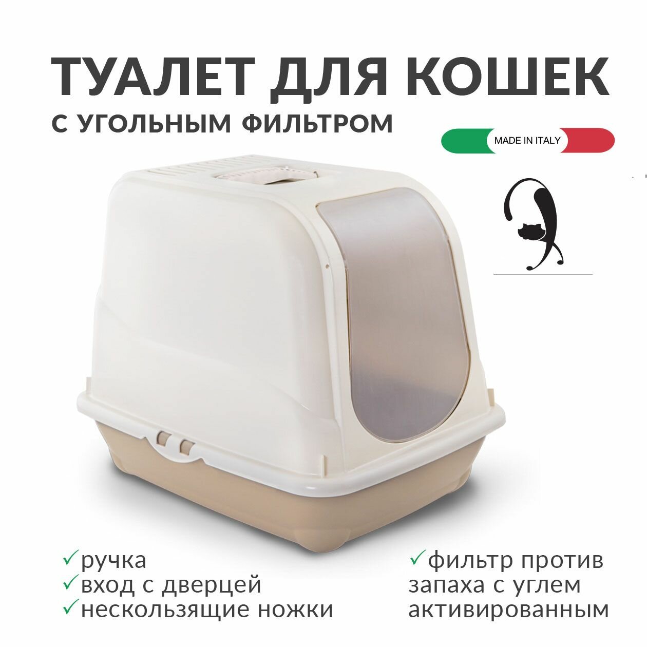 Купить Туалет-домик для кошек MP-BERGAMO OLIVER закрытый с угольным фильтром 46х35х40 см