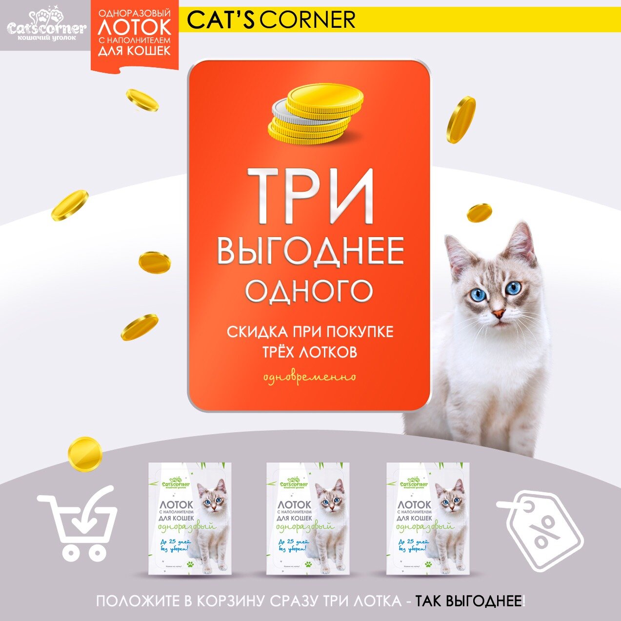 Лоток для кошачьего туалета, с наполнителем 3в1, одноразовый, бренд Cat'scorner Кошачий уголок
