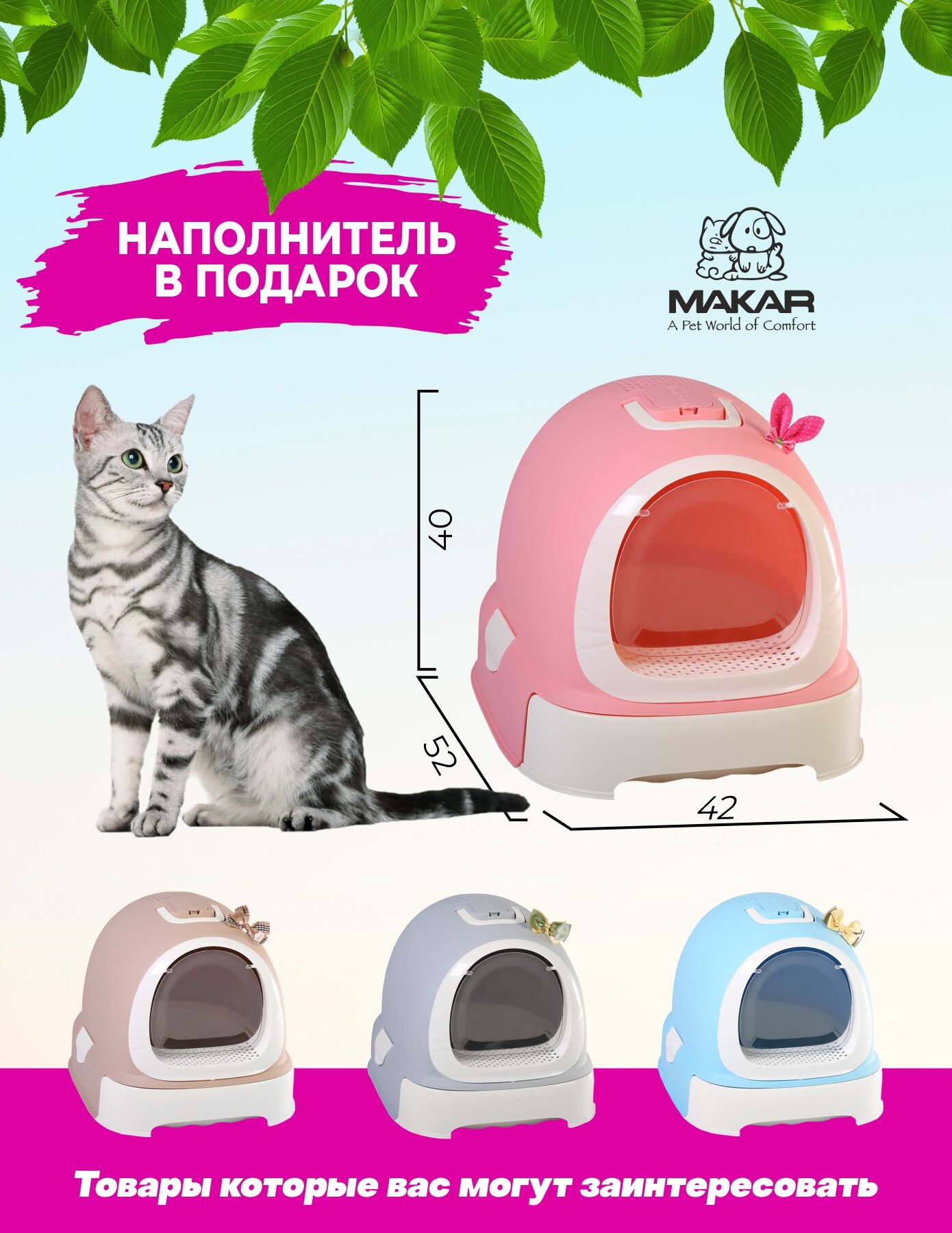 СохранитьТуалет, Туалет-бокс для кошек Makar "Фэнтези", выдвижной поддон, фильтр, совок, пакеты, цвет: розовый, 52 х 42 х 40 см интересное: