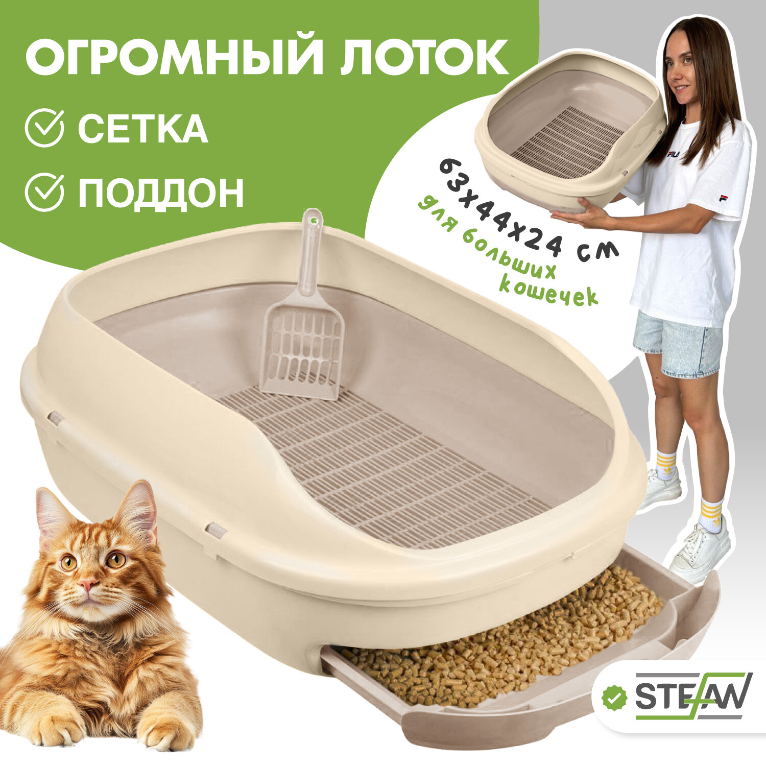 Большой системный для кошек с высокими бортами, сеткой и поддоном STEFAN (Штефан)(ХL) 63х45х21, бежевый, BP2903 интересное: