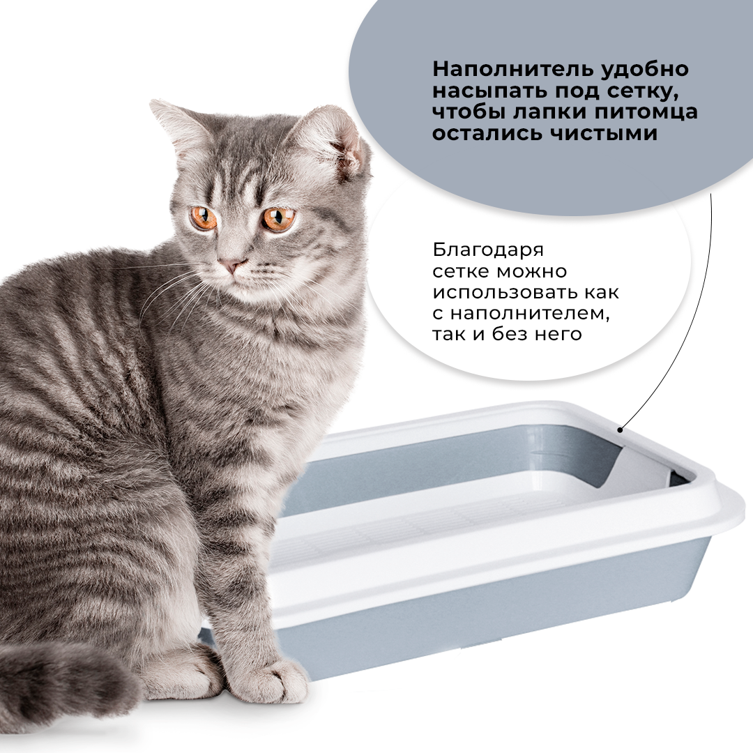Туалет-лоток для кошек ZOOexpress КИС с рамкой и сеткой, 40,5х27х8 см, серый интересное: