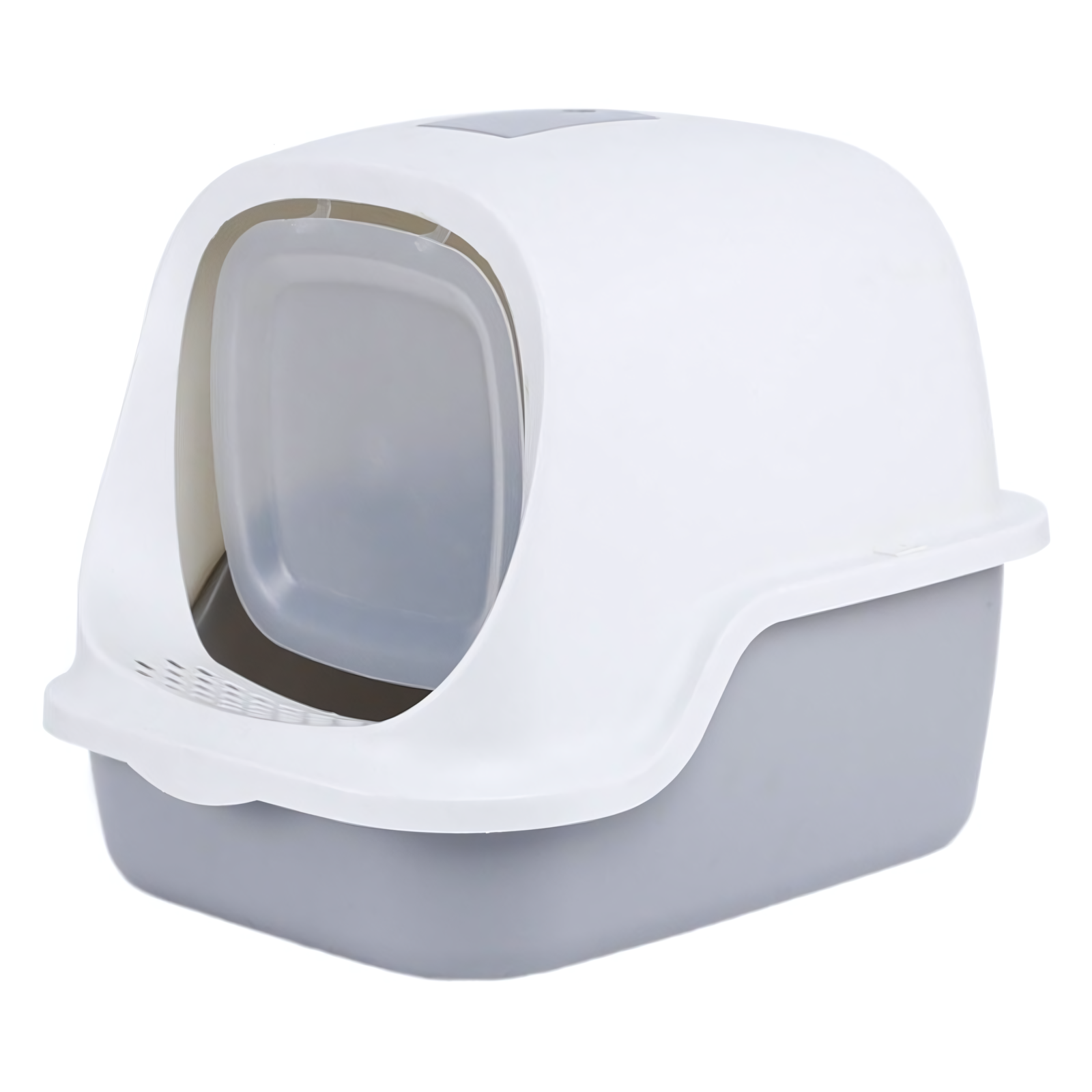Купить Кошачий лоток, закрытый, с лопаткой и вентиляцией, полипропилен, серый, 49x39x38 см