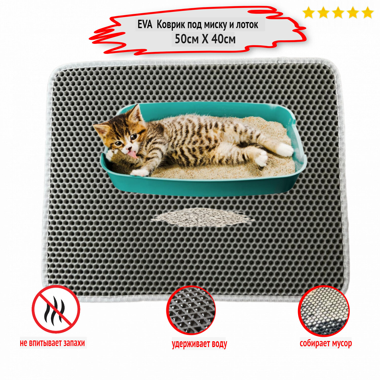 Коврик/подстилка Autozoom для животных 50х40 под лоток/миску. Материал серый EVA/ЭВА/ЕВА, кант серый. интересное: