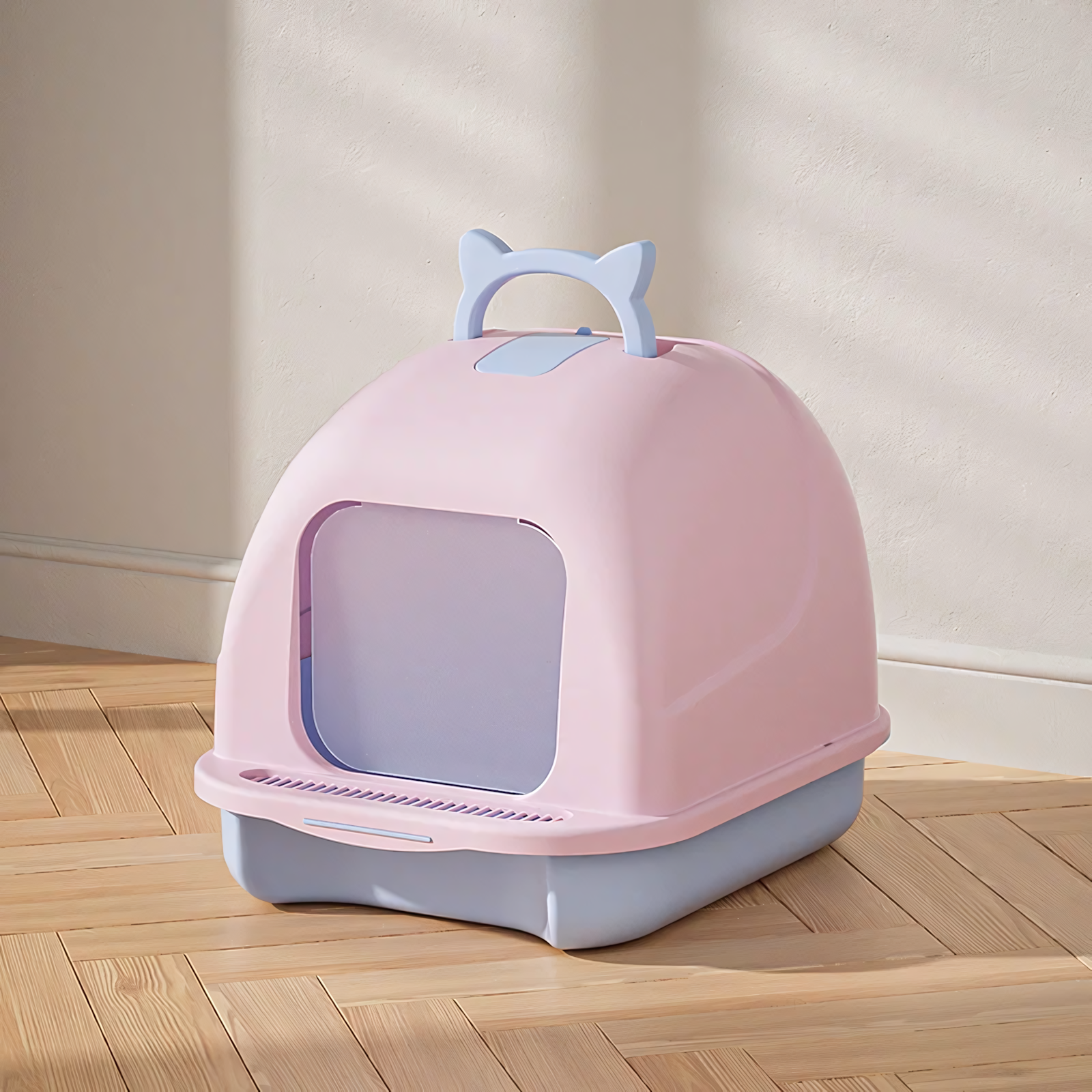 Лоток для кошачьего туалета, закрытый, с лопаткой, арома-мешочком и брызгозащитой, полипропилен