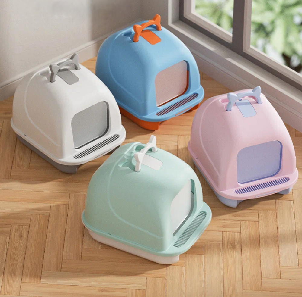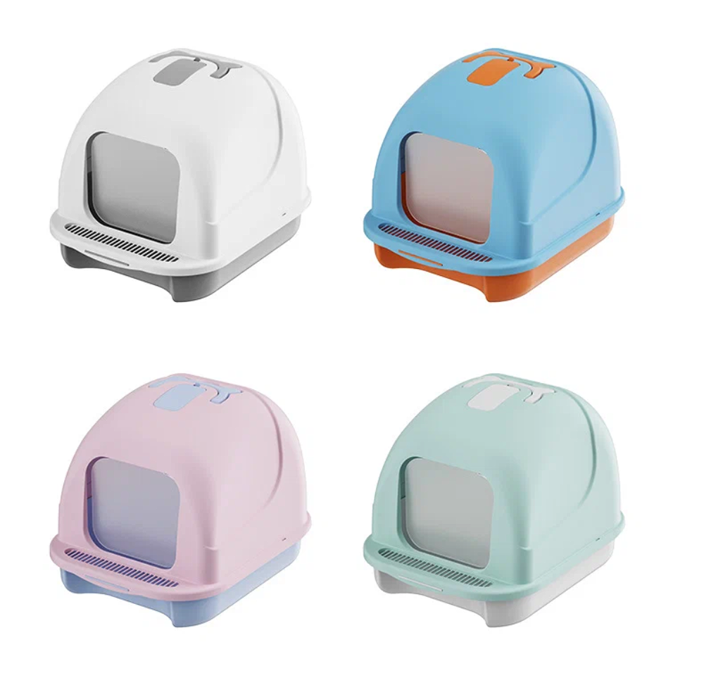 Лоток для кошачьего туалета, закрытый, с лопаткой, арома-мешочком и брызгозащитой, полипропилен