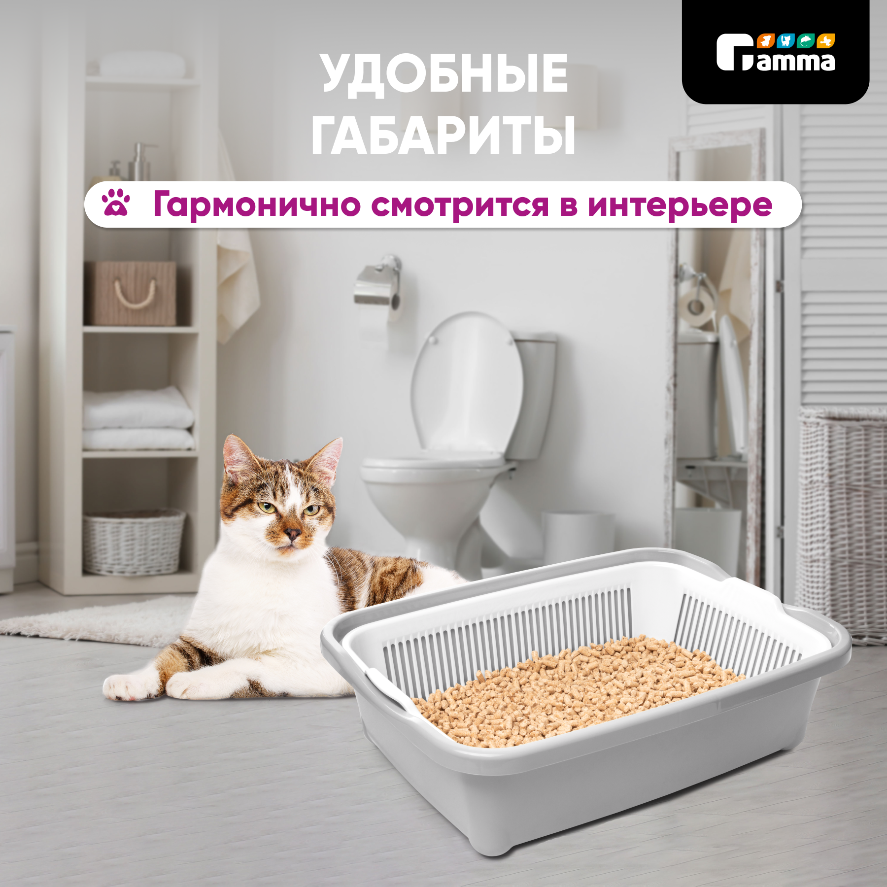 Лоток для кошек высокий с сеткой Gamma "Дюна", Gamma, серый 42х32х12 см интересное: