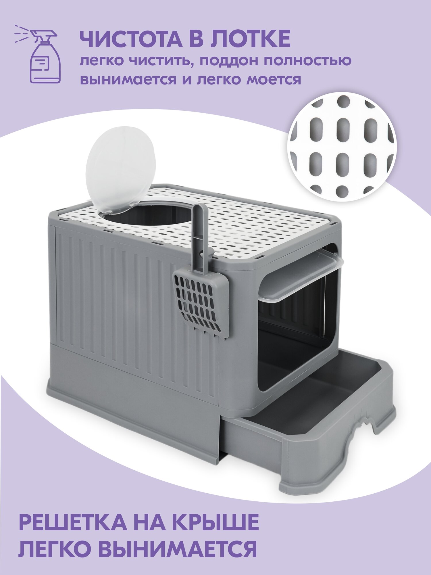 Домик-туалет разборный "PetTails" 51*37,5*h38, светло-серый интересное: