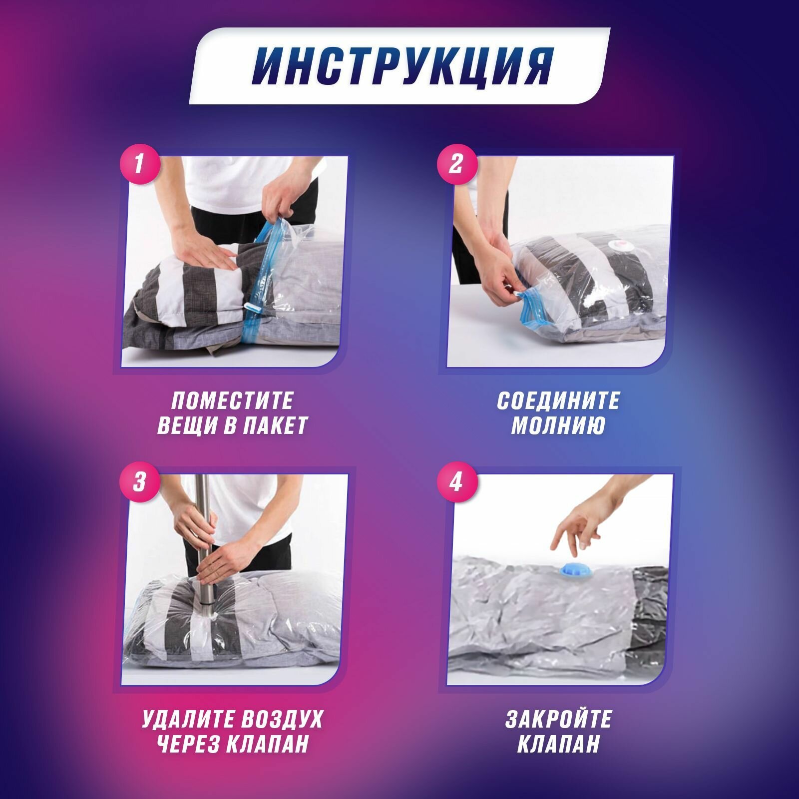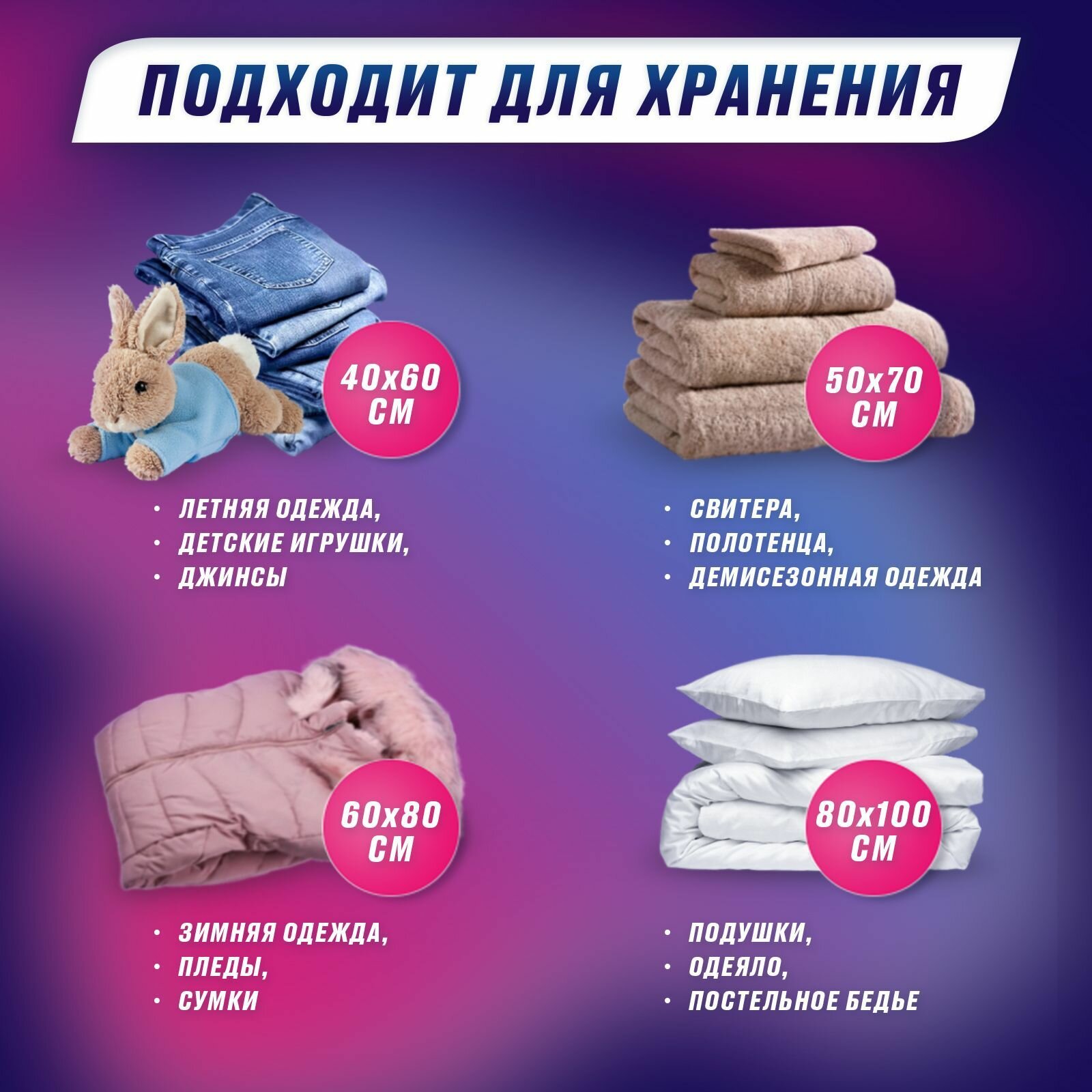 Вакуумные пакеты для одежды 5 шт. Набор: 40х60 - 3 шт. 50х70 - 1 шт. 60х80 - 1 шт. интересное: