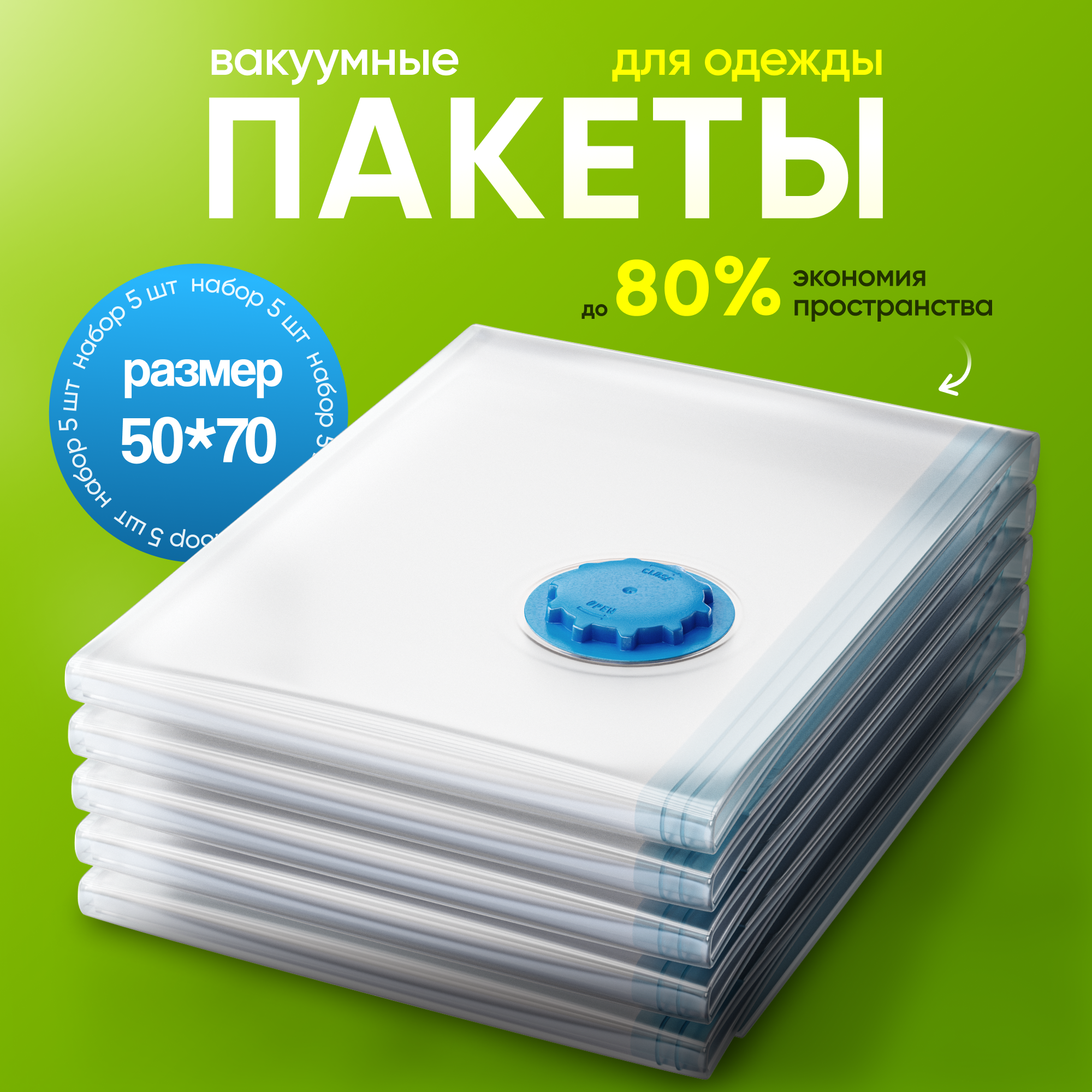 Купить Набор вакуумных пакетов для одежды с клапаном, 50x70 см, 5 штук