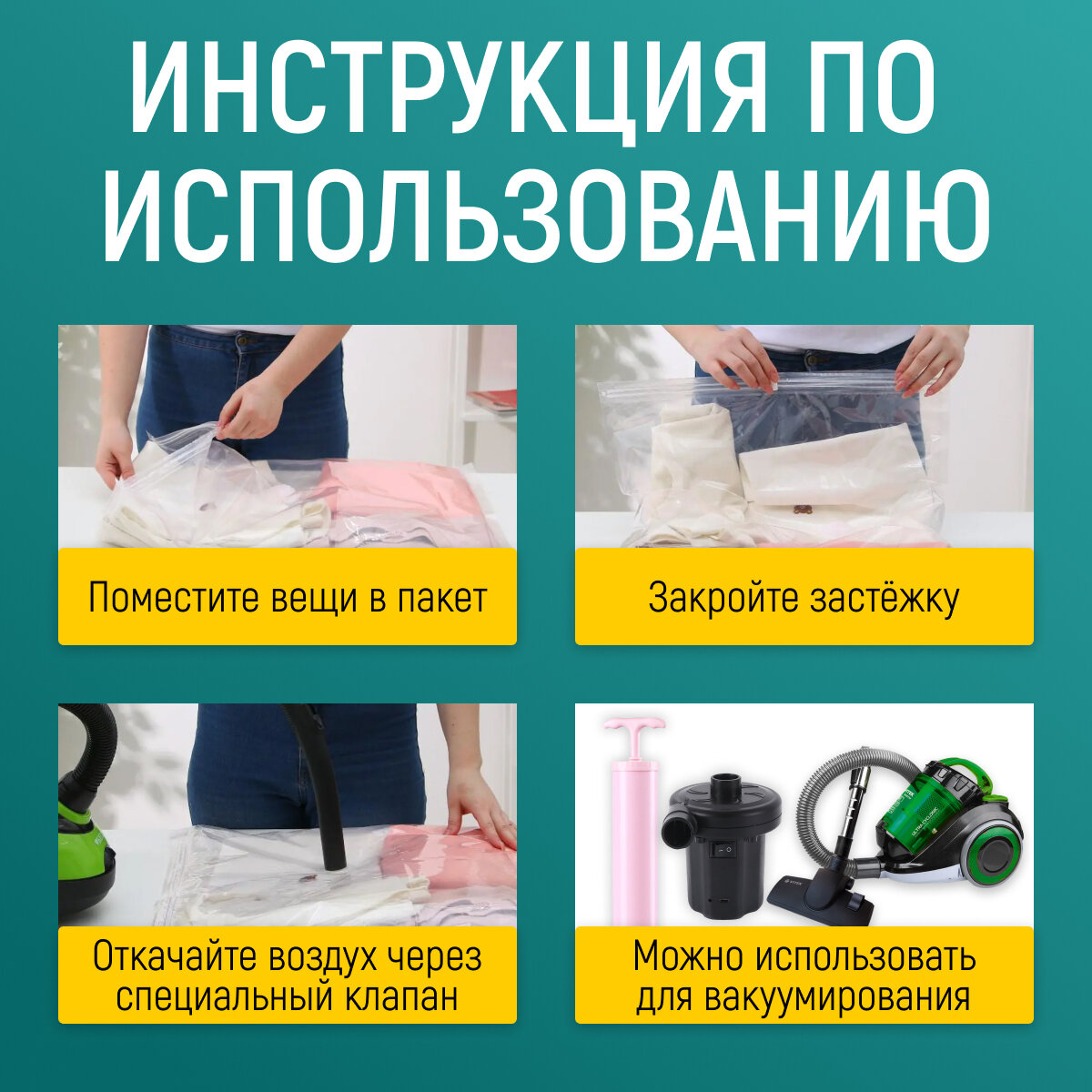 Вакуумные пакеты для одежды TechHouse, прозрачные, с ручным насосом, 20 штук интересное: