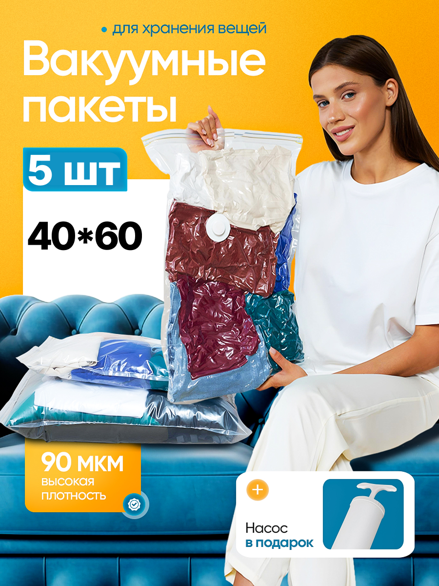 Купить Многоразовые вакуумные пакеты для одежды 5 штук С ручным насосом