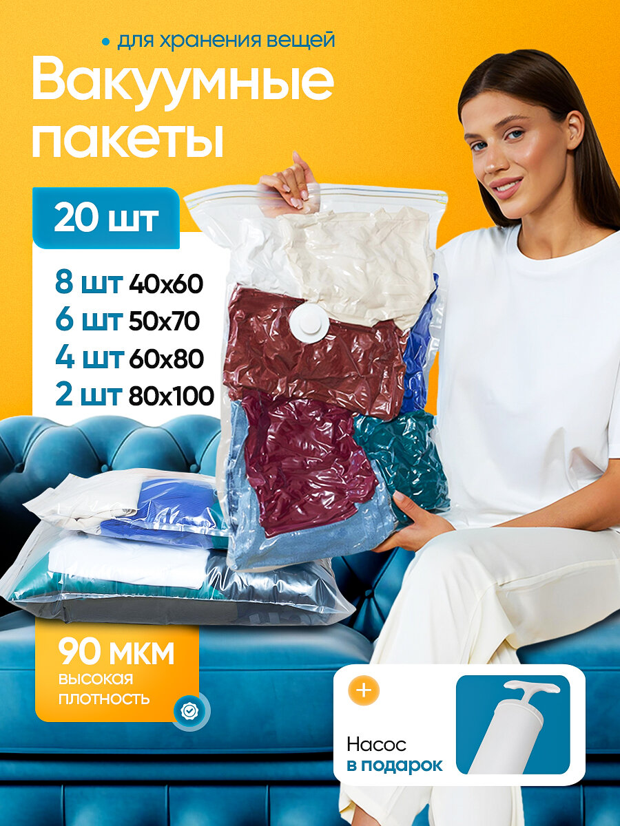 Купить Многоразовые вакуумные пакеты для одежды 20 штук С ручным насосом