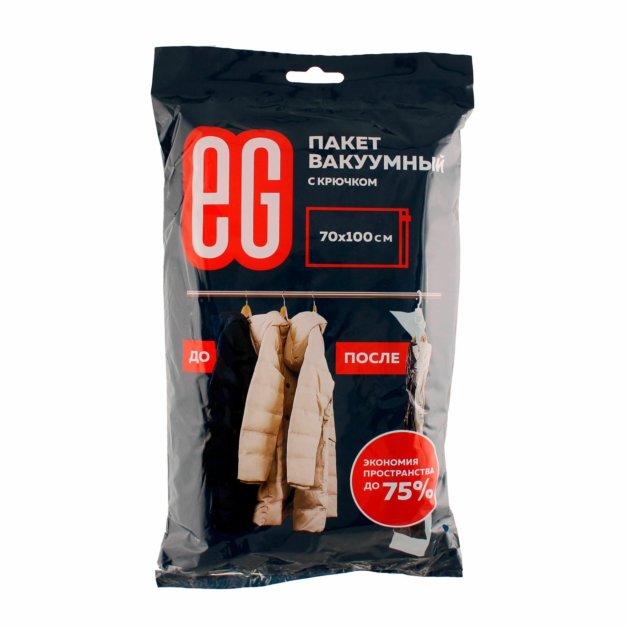 Вакуумный пакет для одежды с крючком EG Еврогарант, прочные пакеты для хранения вещей и путешествий, 70 х 100 см интересное: