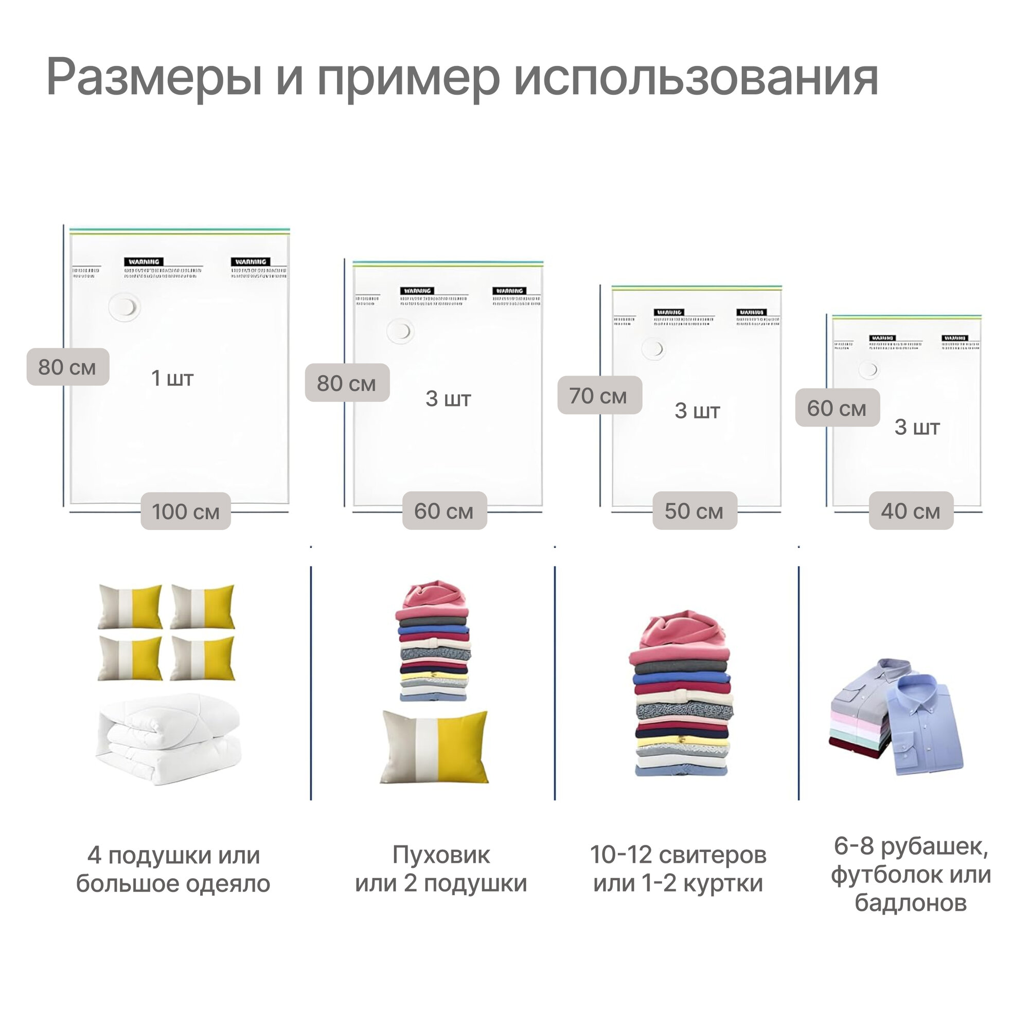 Набор вакуумных пакетов Home One (50х70см 3шт, 40х60 см 3шт, 60х80 см 3шт, 80х100 см 1шт, ручной насос) интересное: