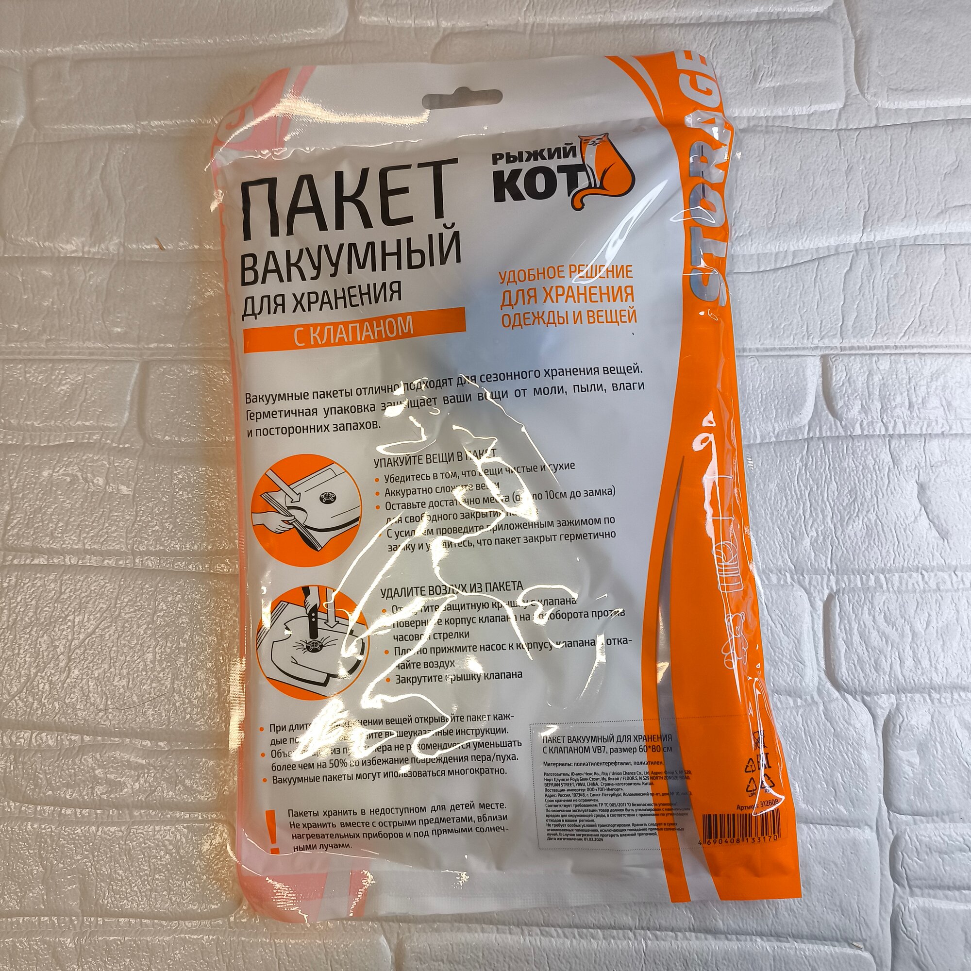 Вакуумный пакет Рыжий кот VB1 40x60 см с клапаном