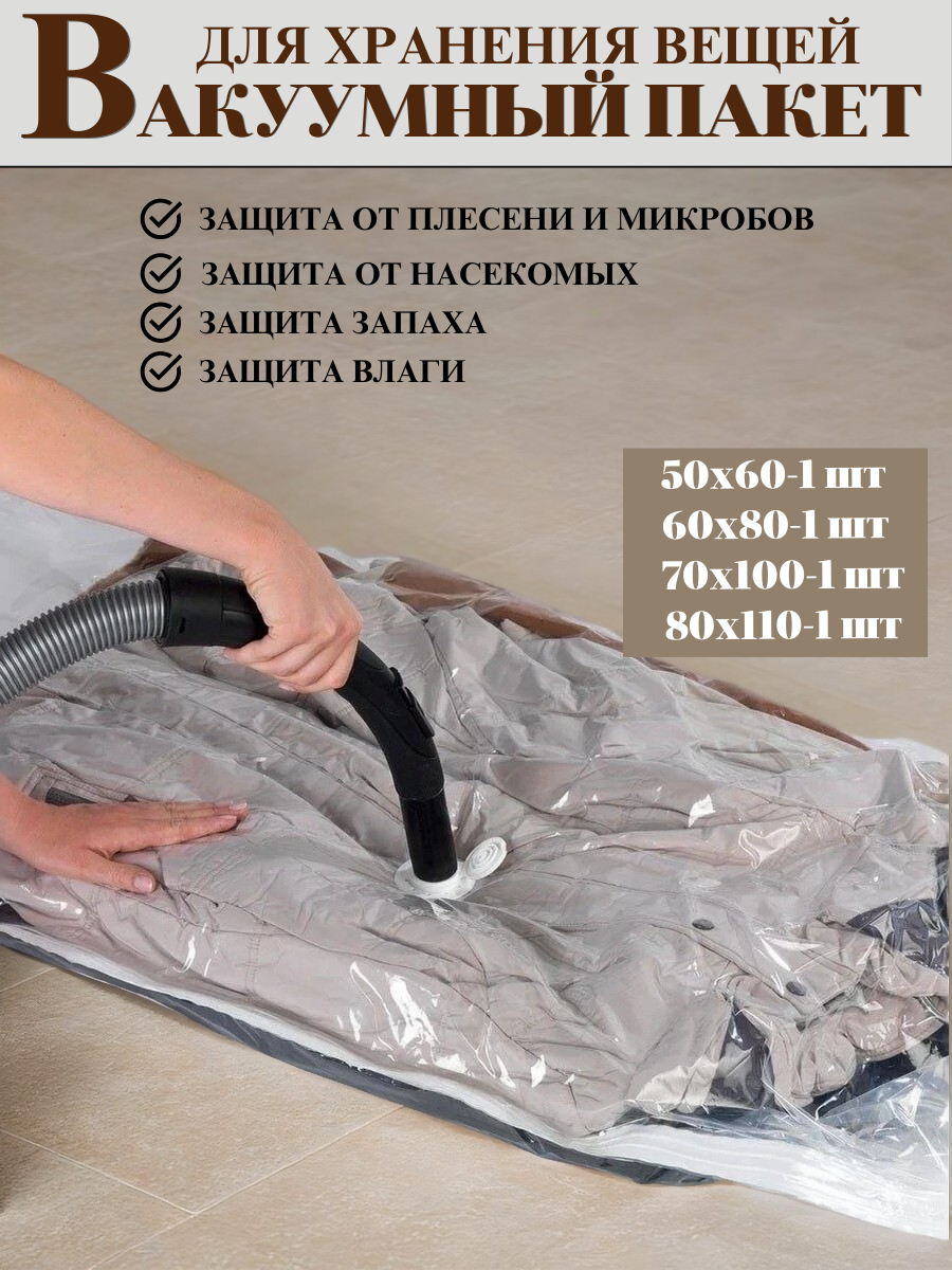 Вакуумные пакеты для хранения с клапаном для пылесоса, набор 4 шт, 50х60-1шт, 60х80-1шт, 70х100-1шт, 80х110-1шт интересное: