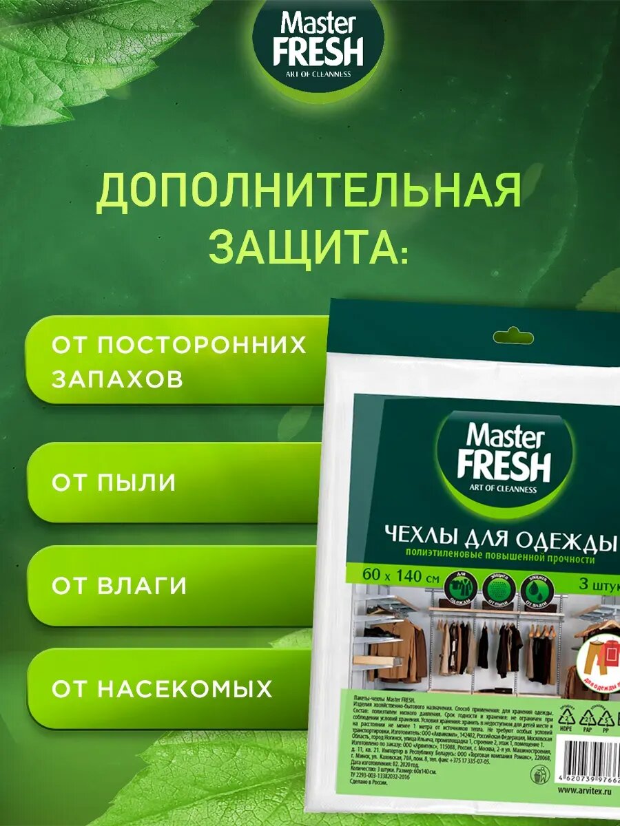 Пакеты для хранения одежды Master Fresh Повышенной прочности набор 60*140см 14мкм 3шт*5шт интересное: