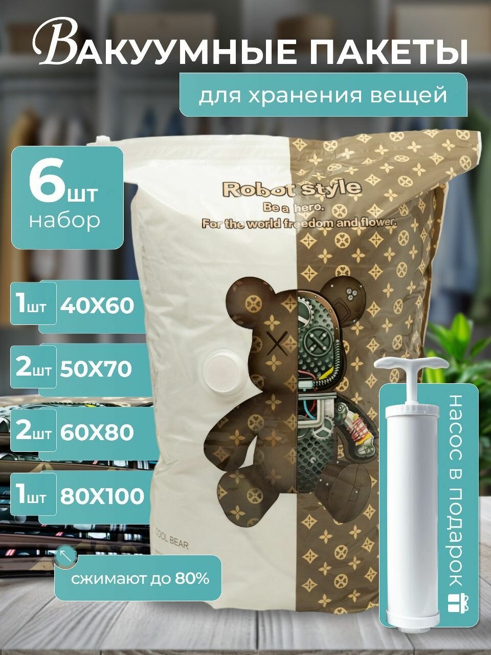 Купить Вакуумные пакеты для хранения вещей 6шт с насосом