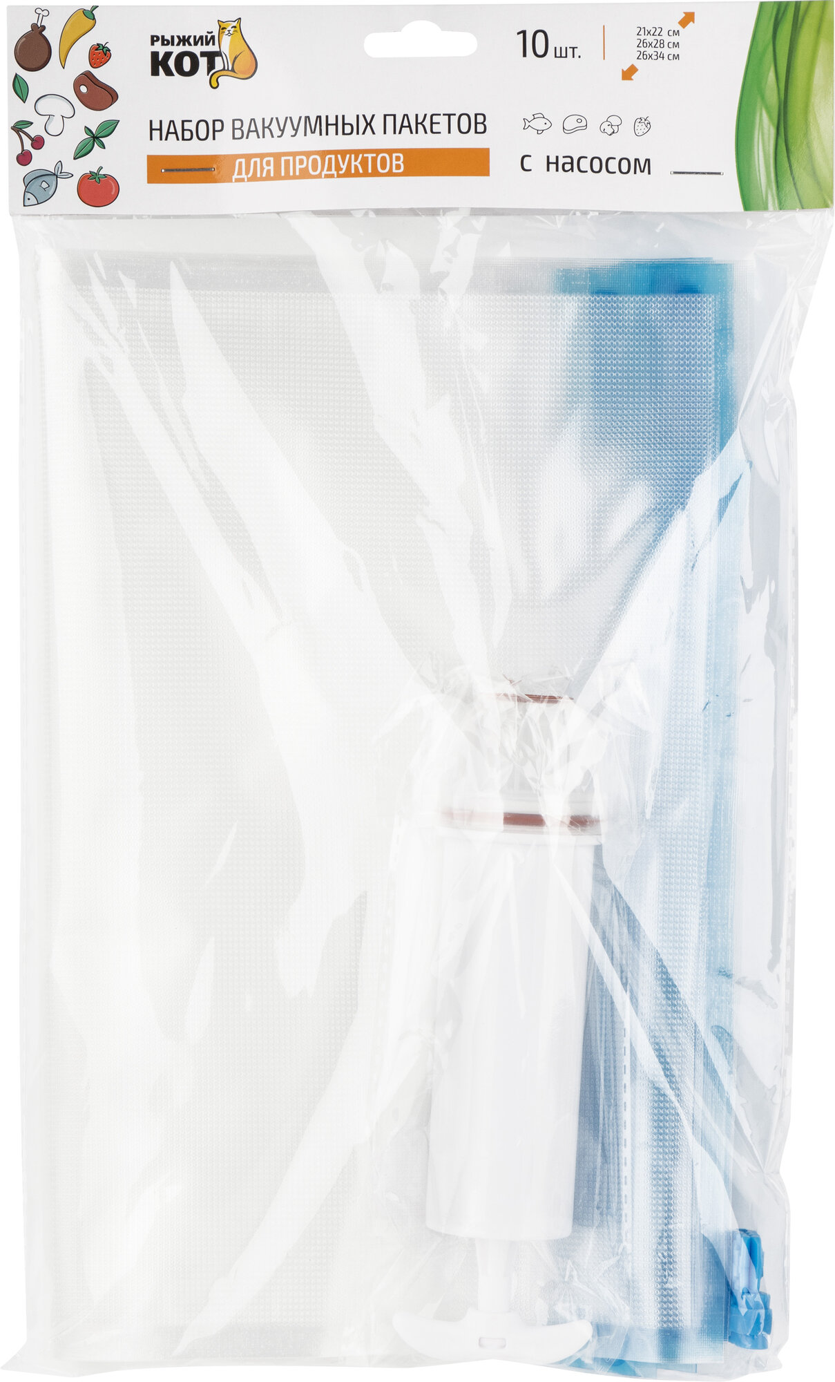Купить Набор вакуумных пакетов для продуктов + насос "Рыжий Кот", 10 шт.