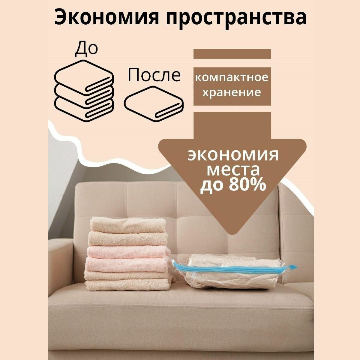 Вакуумный пакет для хранения вещей 80х110 см с рисунком