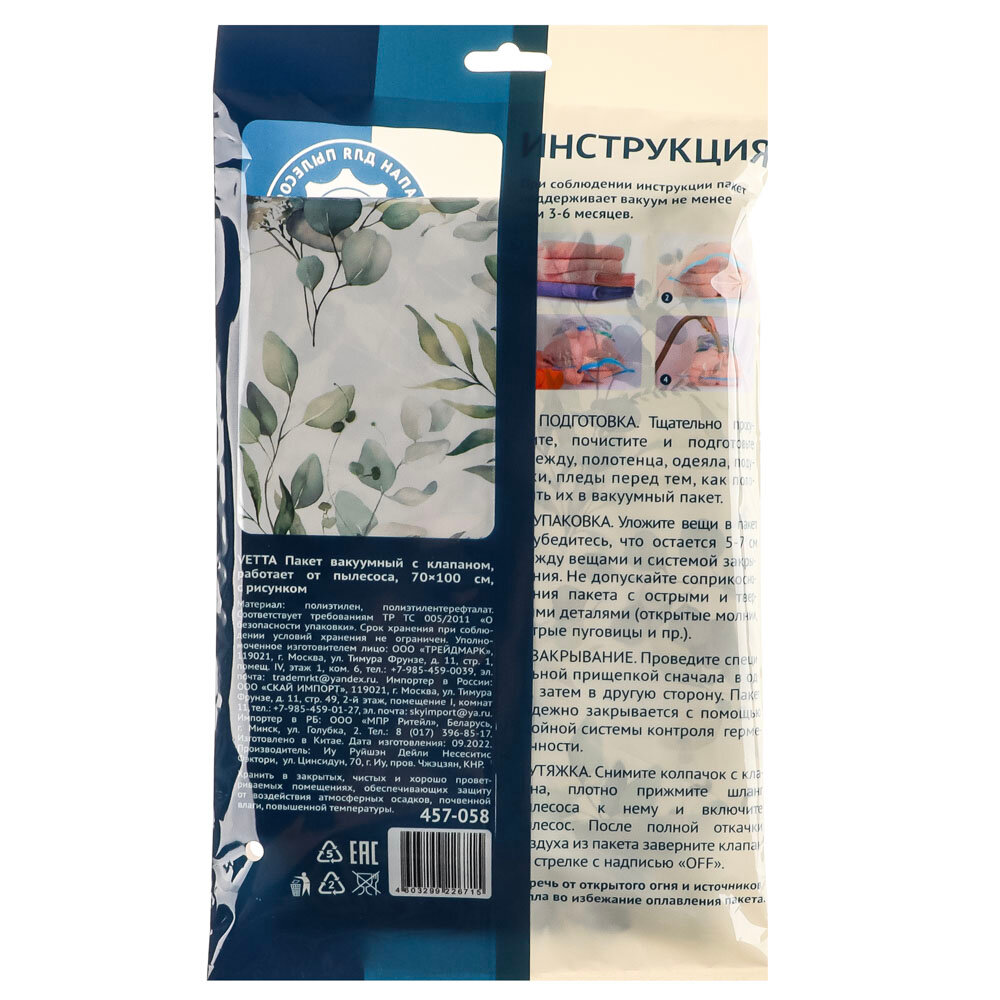 VETTA Пакет вакуумный с клапаном, работает от пылесоса, 70х100см, с рисунком, 12 штук интересное: