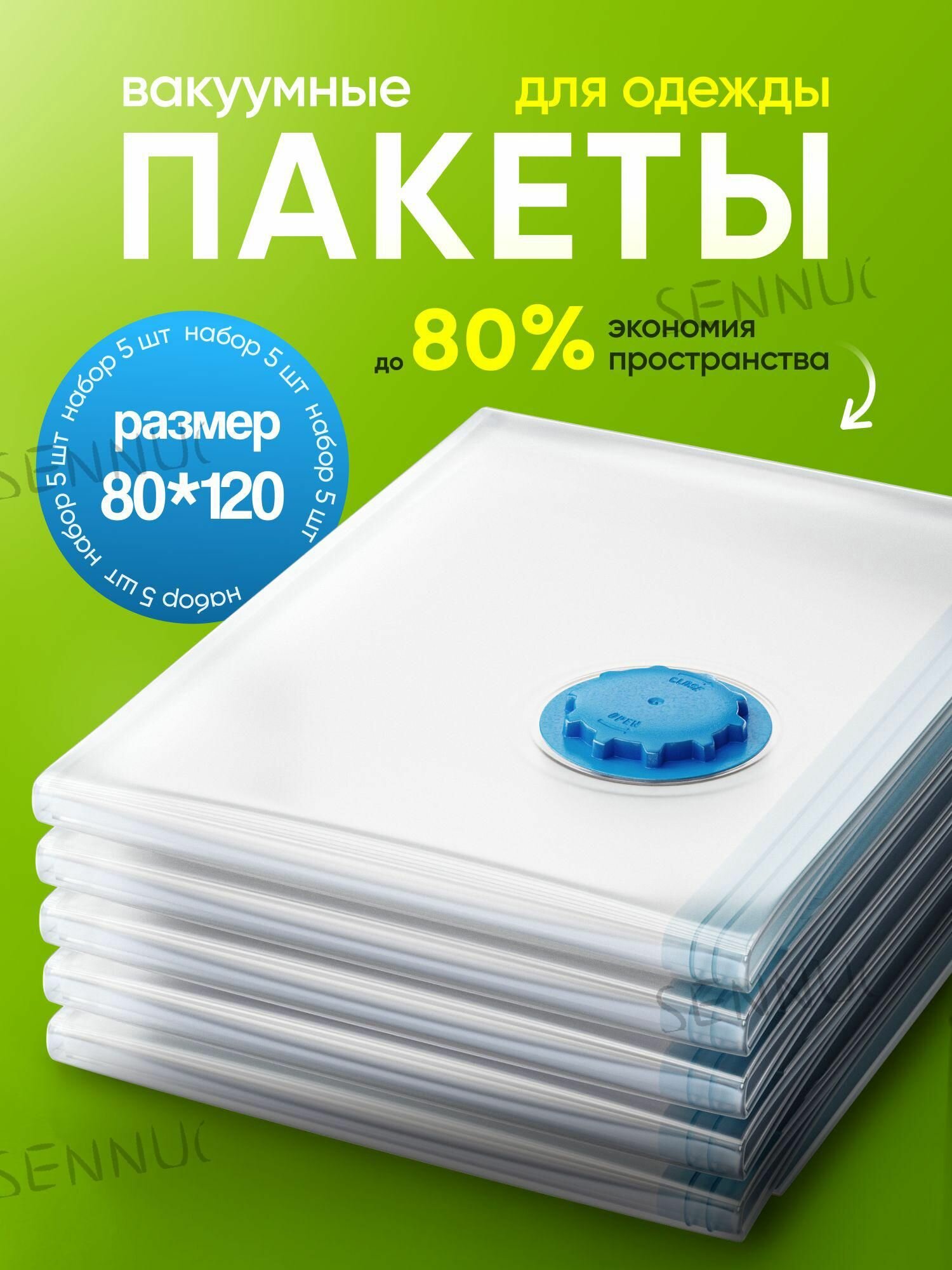 Вакуумные пакеты, полиамид, полиэтилен, для одежды, клапан для пылесоса, 5шт, 80x110см