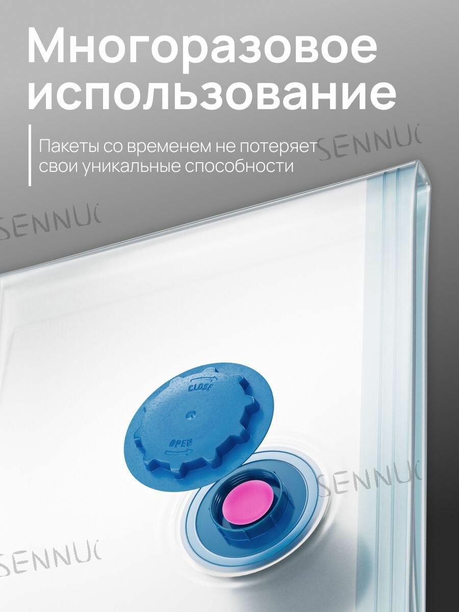 Вакуумные пакеты, с клапаном для пылесоса, полиамид, полиэтилен, 5шт, 80см x 100см
