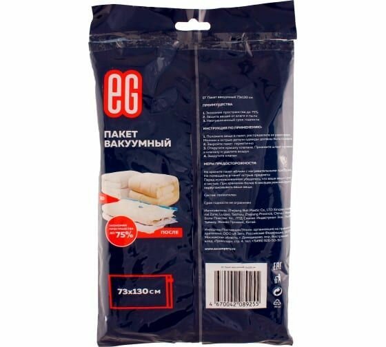 Пакет вакуумный для хранения EG 73х130см, плотность 7 мкрн. Объем 72л интересное: