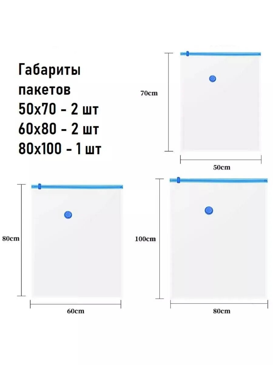 Вакуумные пакеты для одежды и хранения вещей 5 шт.