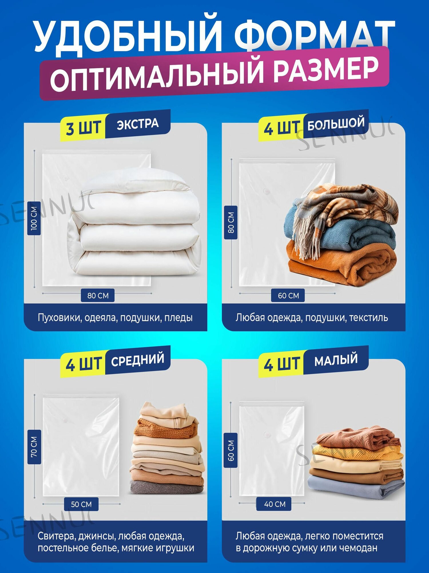 Вакуумные пакеты для одежды 15 штук с насосом и клапаном многоразовые / Вакуумные мешки для хранения вещей, пуховиков интересное: