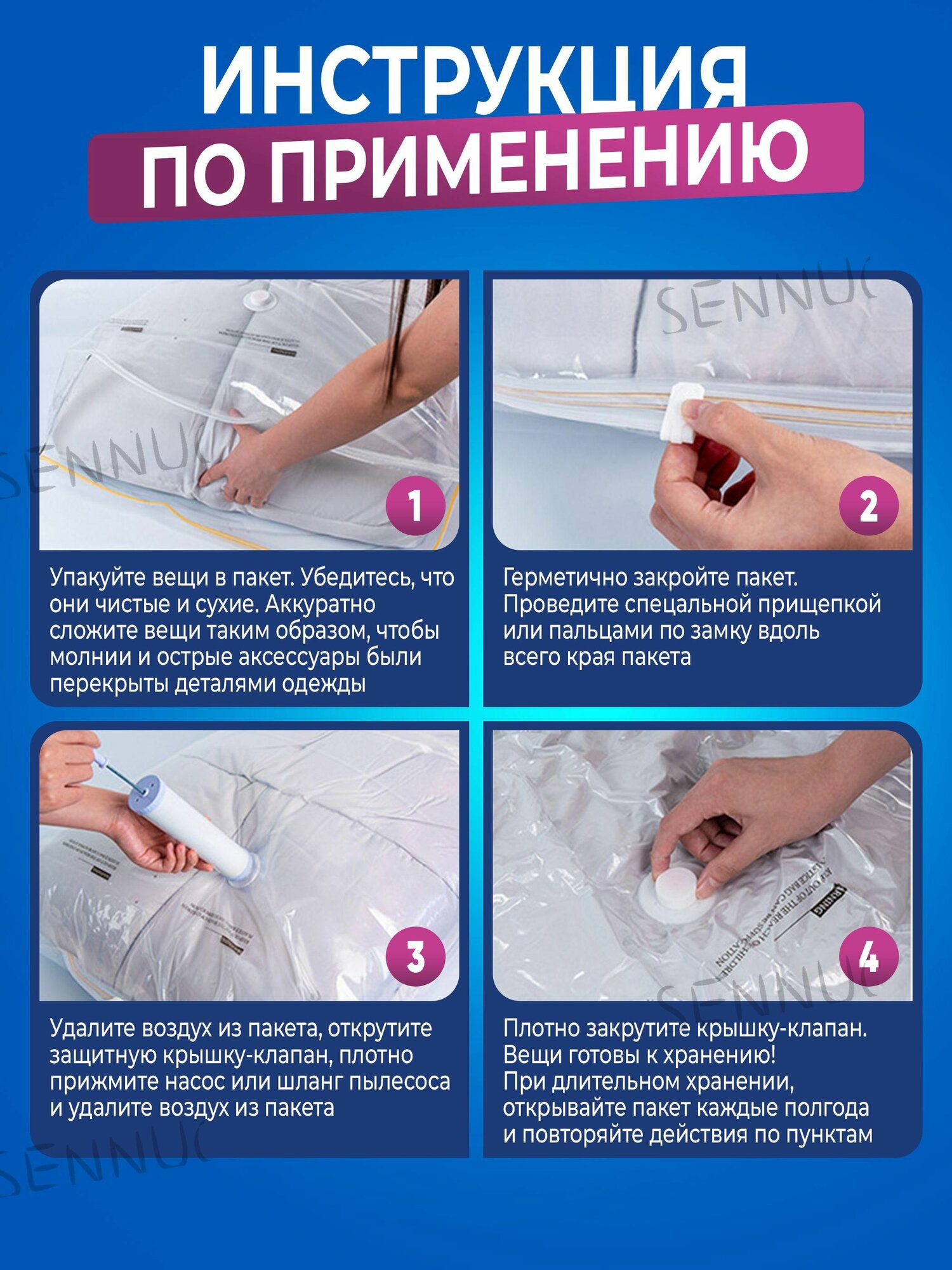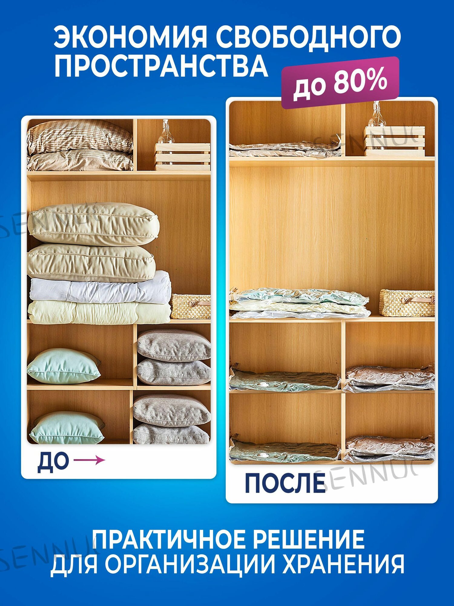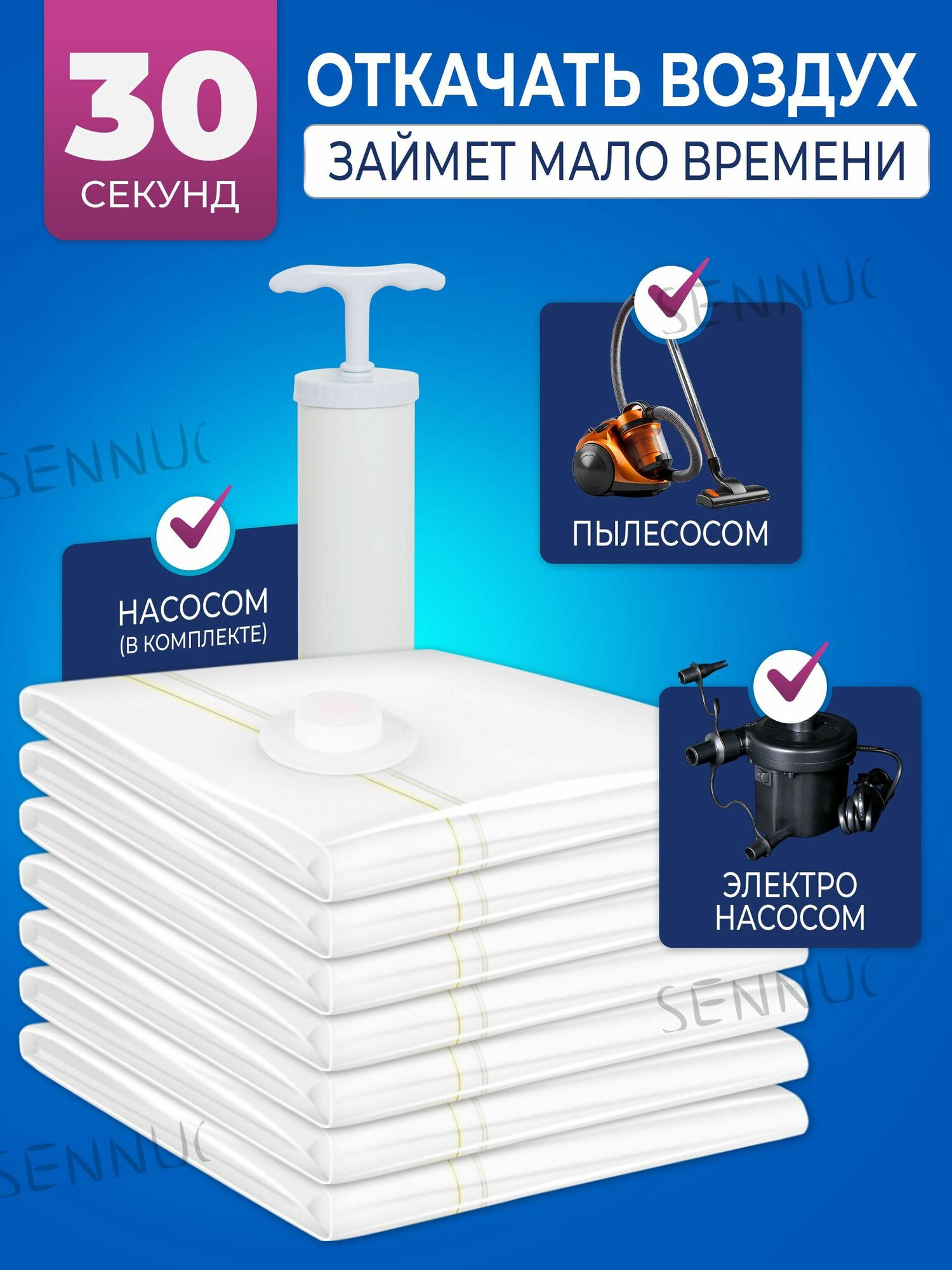 Вакуумные пакеты для одежды 12 штук с насосом и клапаном многоразовые / Вакуумные мешки для хранения вещей, одеял
