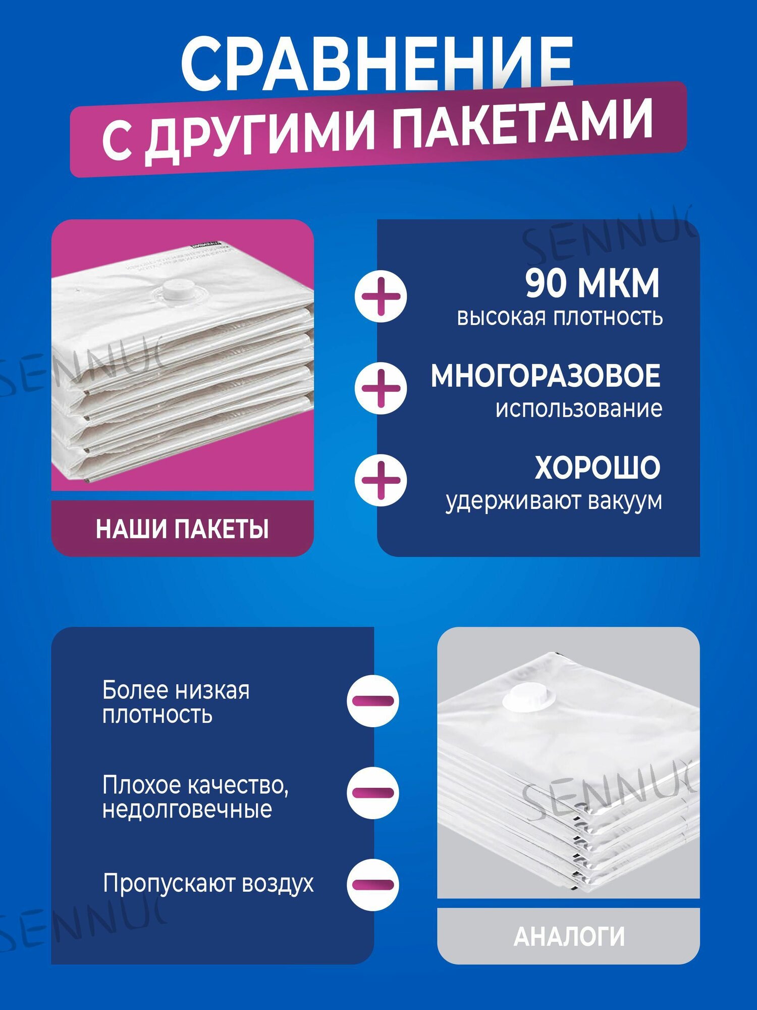 Набор вакуумных пакетов для хранения, полиамид, 10шт, длина 70см, ширина 50см интересное: