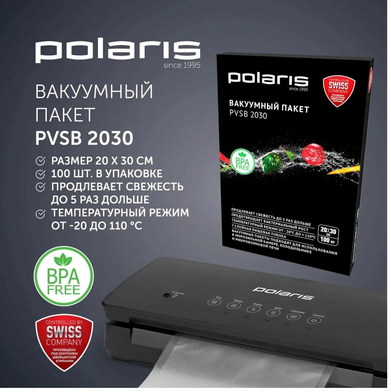 Вакуумные пакеты Polaris PVSB, для вакууматора 20x30см, 100шт, прозрачные интересное: