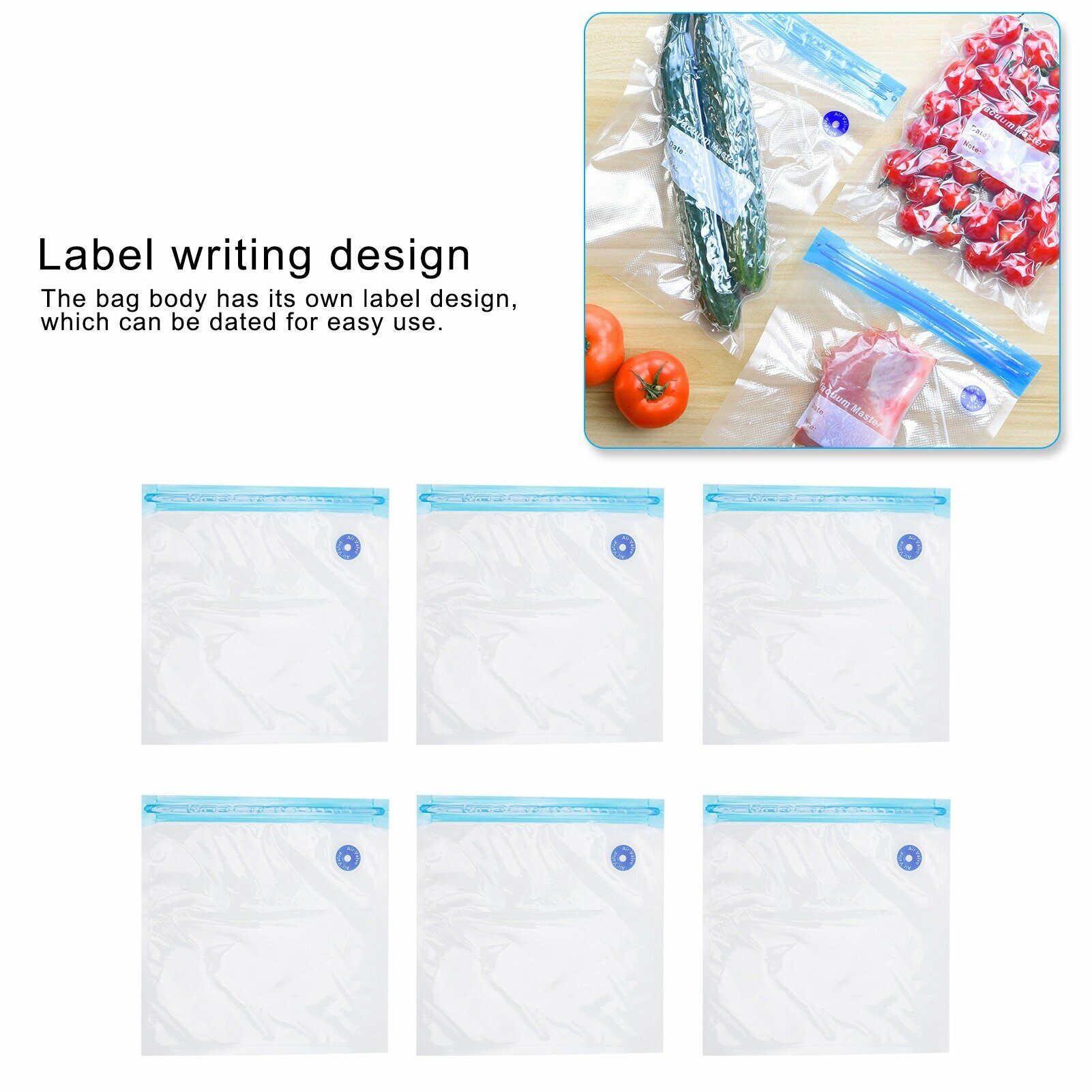 Купить 6Pcs Vacuum Zipper Bags Food Sealer Storage Reusable with Double Layer Zippers Designed(22x21cm )