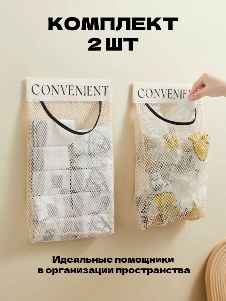Сетка-органайзер на липучке 2 шт, бежевая. Для порядка в доме интересное: