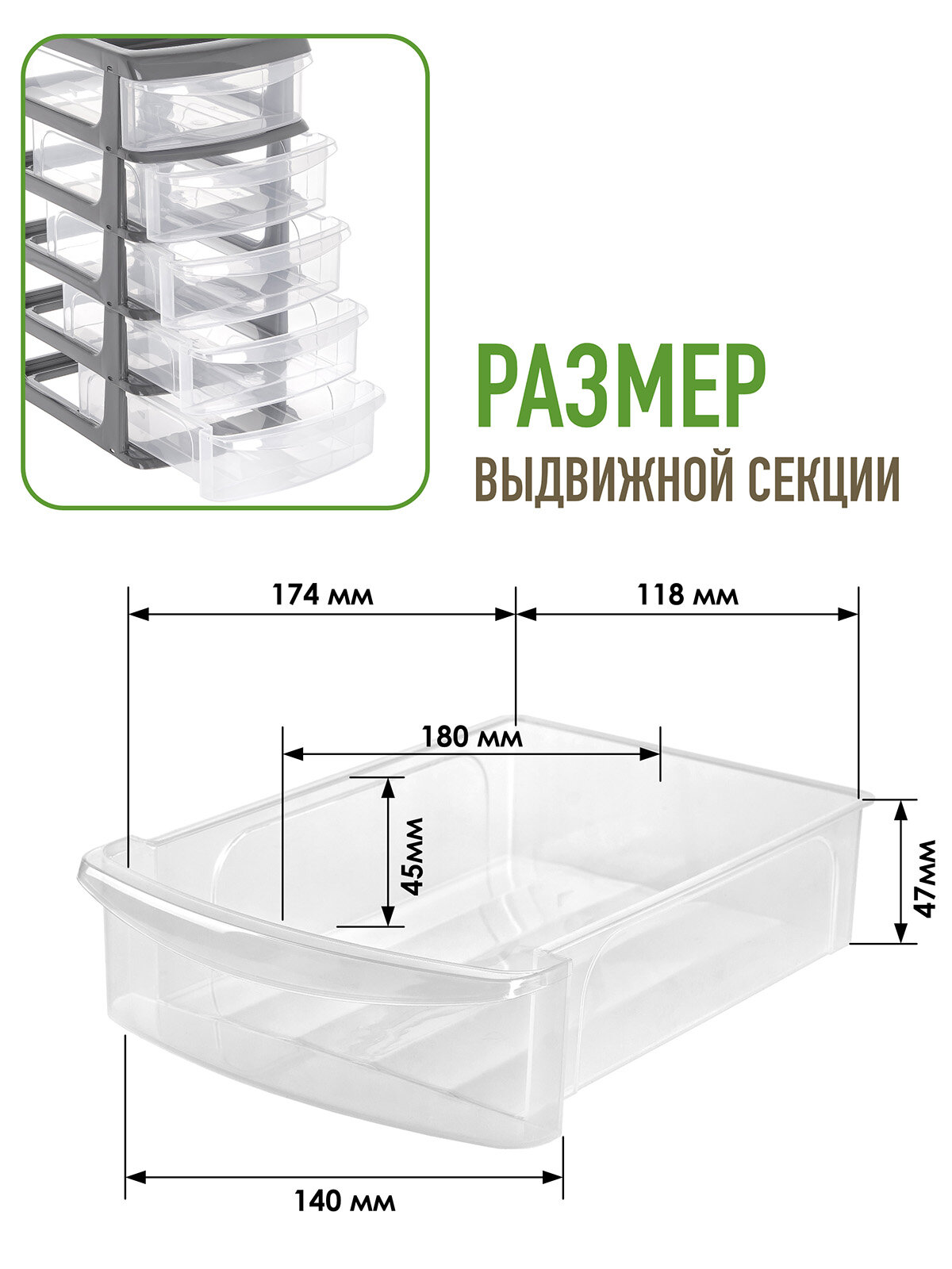 Органайзер пластиковый для хранения косметики, мини комод для канцелярии, 5 отделений 20,5*14,5*28 см интересное: