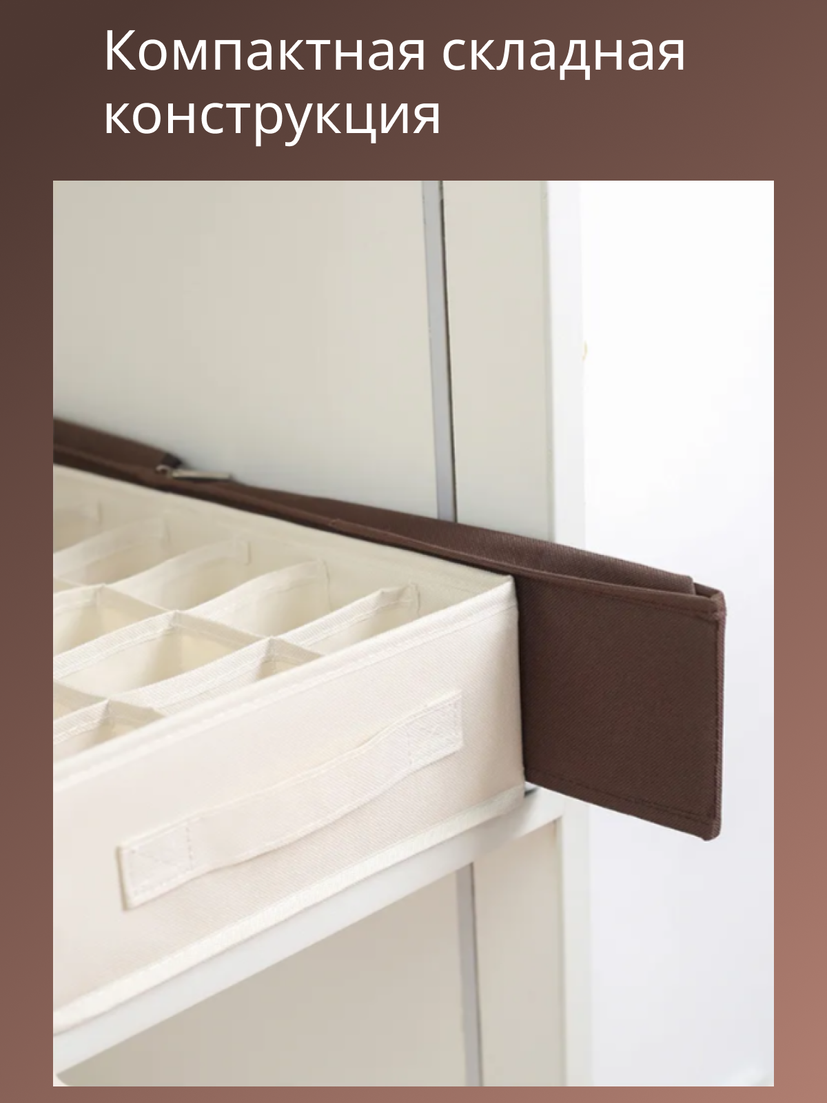 Купить Органайзер для белья и носков, бежевый, складной, 10x34x24 см