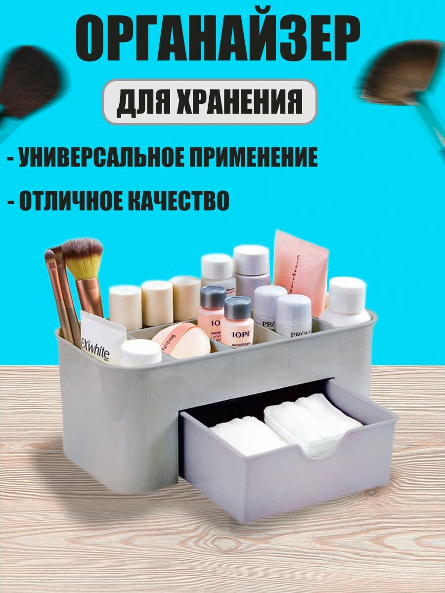 Купить Органайзер для косметики, органайзер для канцелярии серый с ящиком арт 726010