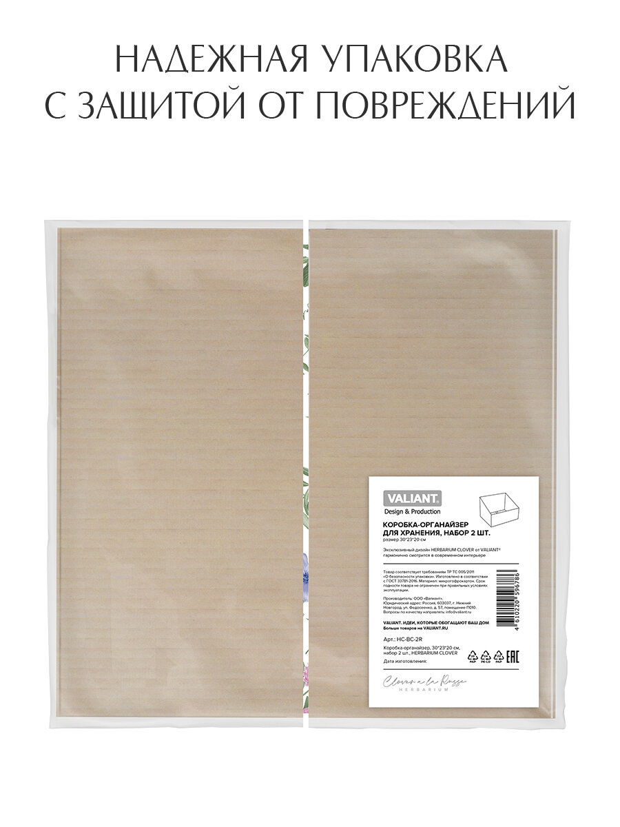 СохранитьКоробки для хранения вещей, подставка для книг и учебников, набор 2 шт, 30*23*20 см, HERBARIUM CLOVER интересное: