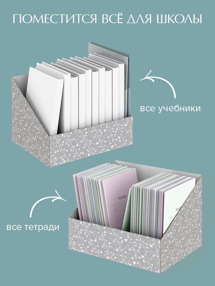 СохранитьКоробки для хранения вещей, подставка для книг и учебников, набор 2 шт, 30*23*20 см, BOTANIC GREY интересное: