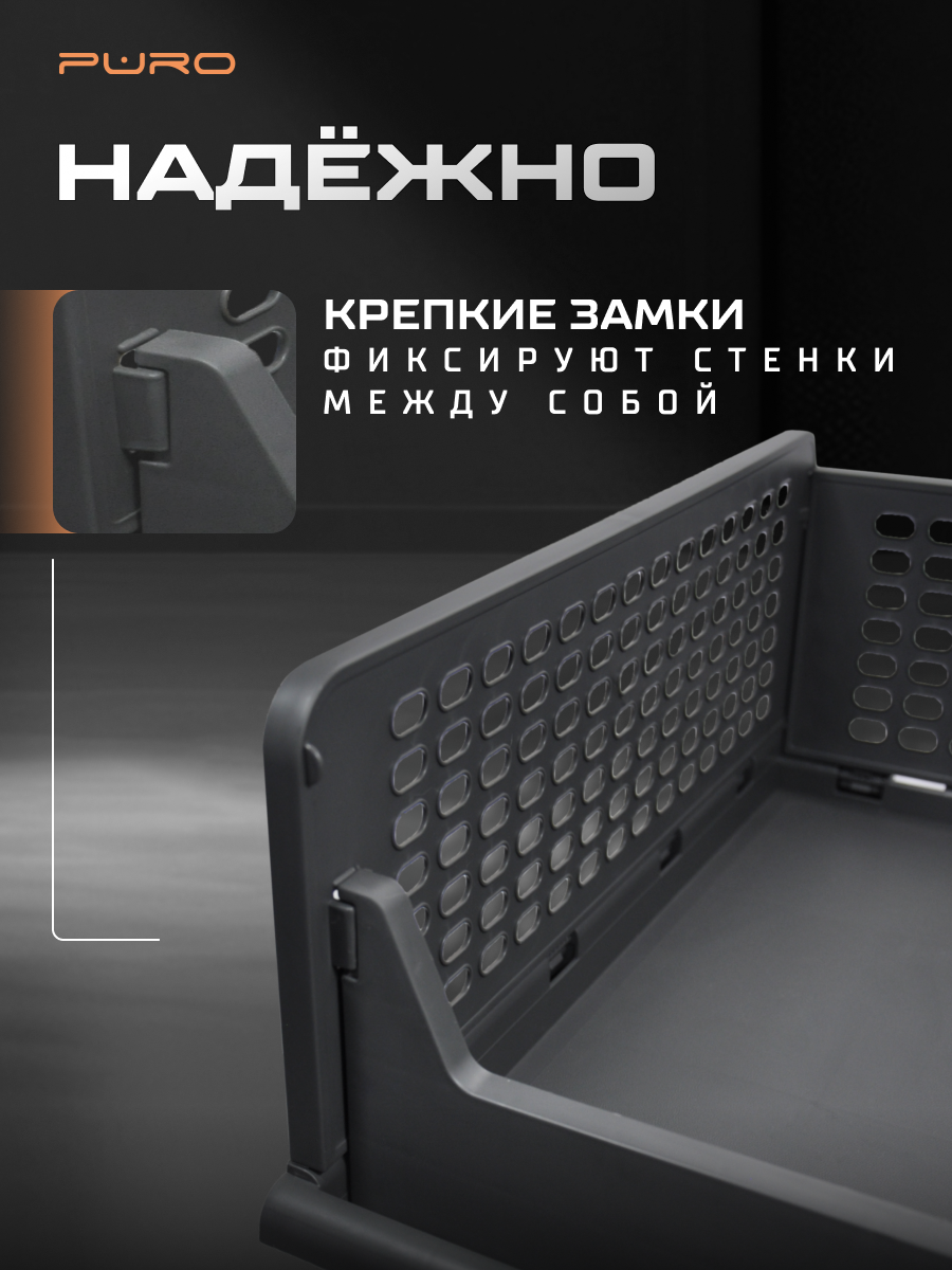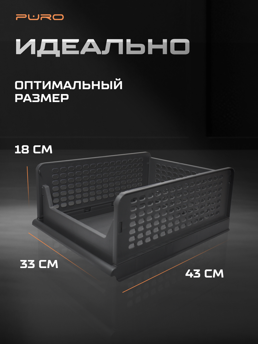 Складные органайзеры для хранения вещей, ящики, контейнеры PURO FLEX 19 см, комплект 3 шт, графитовые интересное: